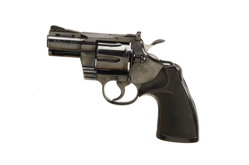 Condition: Excellent with just a small amount of wear at the muDouble action 6 shot revolver. Blued finish, black checkered replacement Pachmayr grips, 2 1/2" full lug barrel with ventilated rib, Good bore and action. Condition: Excellent with just a small amount ofwear at the muzzle.