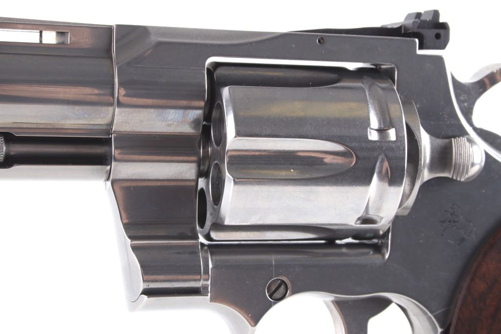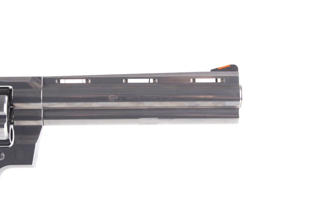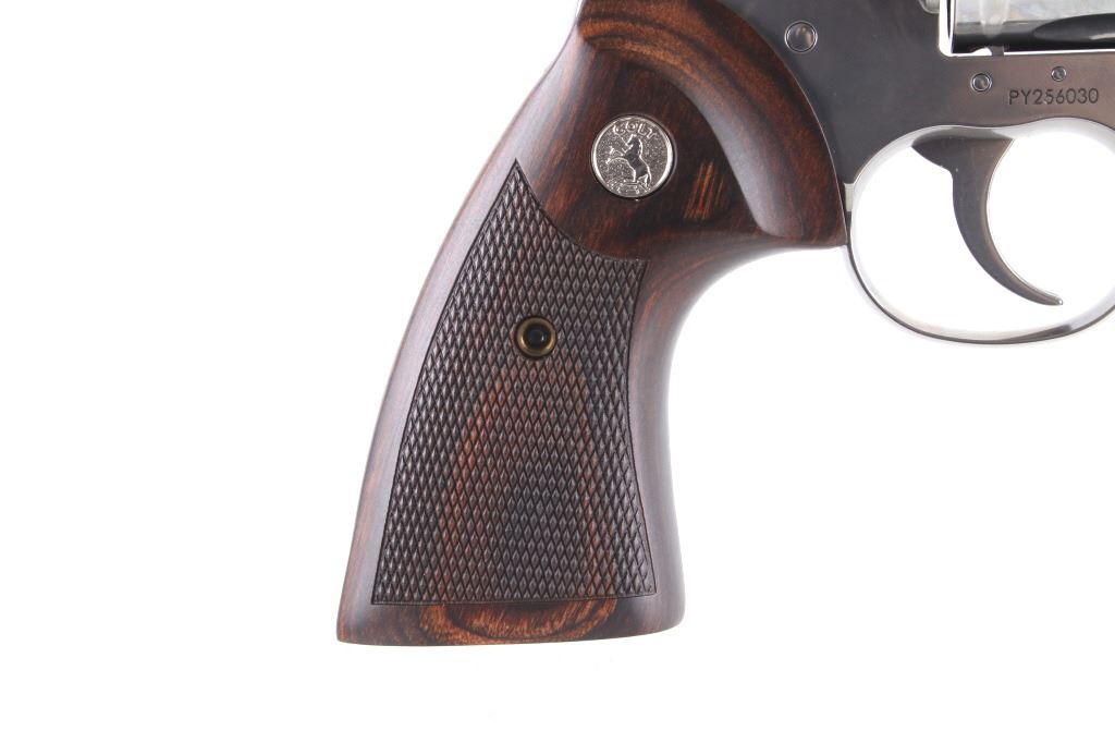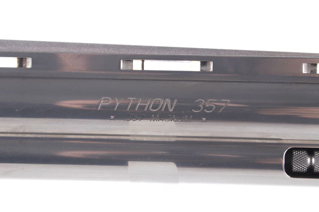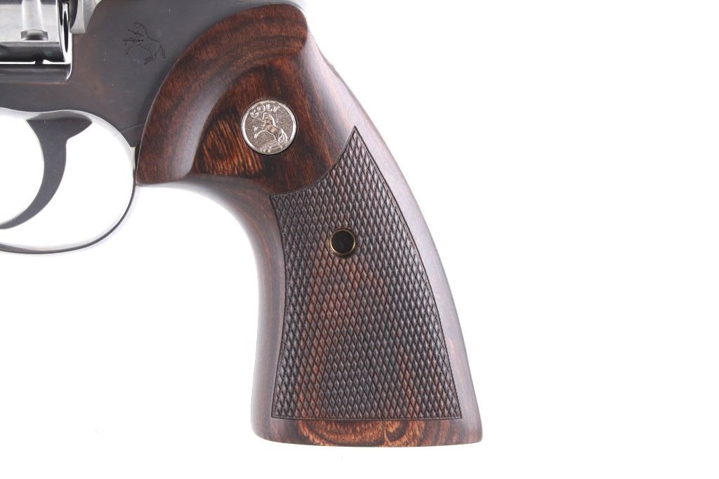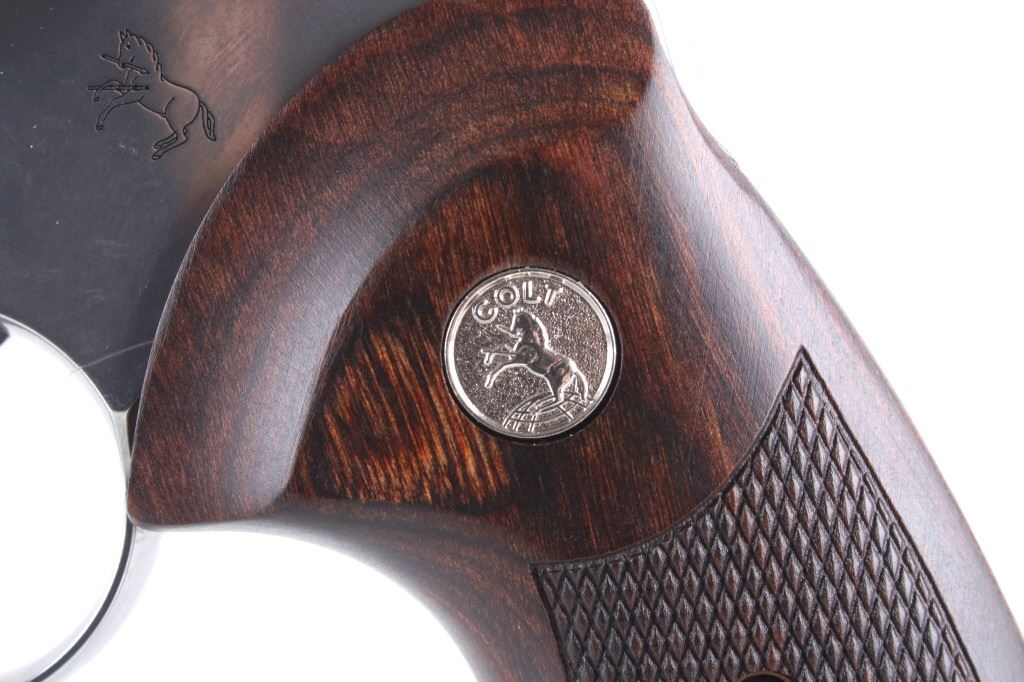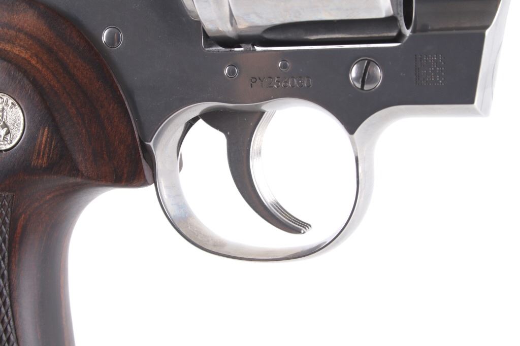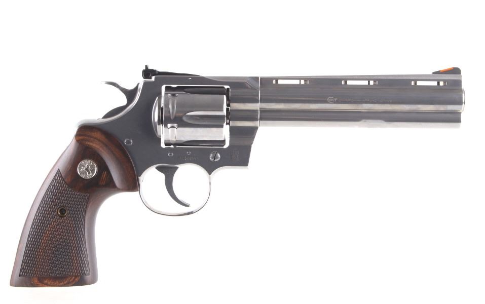 Featured in this lot we have a near mint Colt Python double action revolver chambered in .357 Magnum and comes with its original carry case box. This iconic revolver is built on Colt's large I-Frame, and is finished in Colt's Stainless steel, contrasted by dark laminate grips, adorned with the Colt crest. Additionally, the revolver comes with a 6", full solid underlug barrel, full top rib, and adjustable rear sight. The Colt Pyhton was introduced in 1955, intended for Colts "premium market segment". Supporting that claim - Firearm collectors and writters such as Jeff Cooper, Ian V. Hogg, Chuck Hawks, Leroy Thompson, and many more described the Colt Python as "the finest production revolver ever made", while official Colt historian - RL Wilson describes the Python as "the Rolls-Royce of Colt Revolvers". This revolver is marked across the left side of the barrel reading "PYTHON 357 * .357 MAGNUM *. and marked on the right side reading "COLT'S MFG. HARTFORD, CT USA". The revolver show like new quality with little to no wear across the piece and mechanically smooth actions. The revolver comes with its original Colt hard plastic carry case, manual, and gun lock. This wonderful revolver and its case weigh 4lbs 12oz in total. Serial Number: PY256030. This is a modern firearm and requires a FFL transfer or NICS background check.