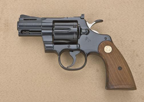 Colt Python Model DA revolver, .357 Magnum, 2-1/2” ventilated rib barrel, black finish, checkered Colt medallion wood grips, #97178E. This gun is in overall like new factory condition showing 99% +++ original finish,fine bore, action, markings and grips; accompanied by factory wood grain cardboard box with insert and instruction booklet. Highly collectible particularly in this condition. Est.: $600-$1,200.