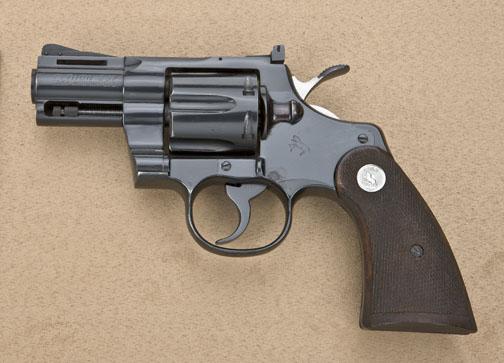 Colt Python Model DA revolver, .357 Magnum cal., 2-1/2” barrel, black finish, checkered Colt medallion wood grips, #13700E. This gun is in overall excellent condition showing approx. 98% original finish with just slightholster wear at the muzzle, fine bore, crisp action, sharp markings and fine Colt grips but slightly oversized for this gun and possibly replacements. Est.: $450-$900.