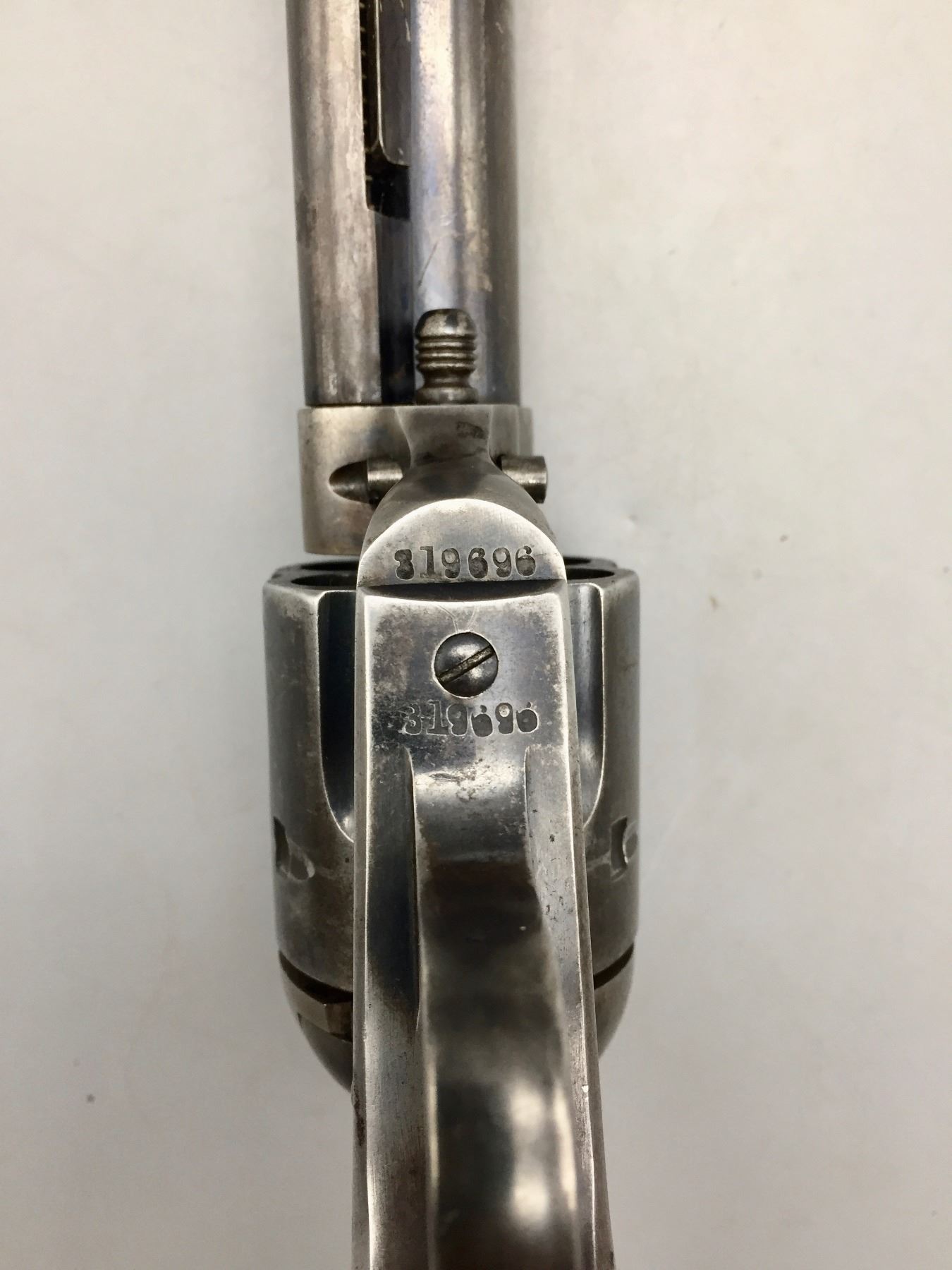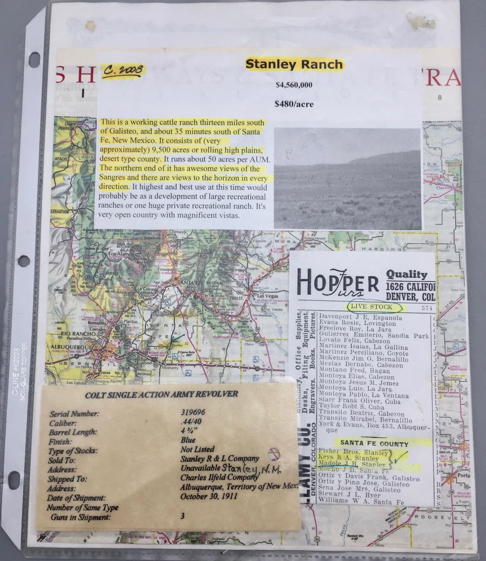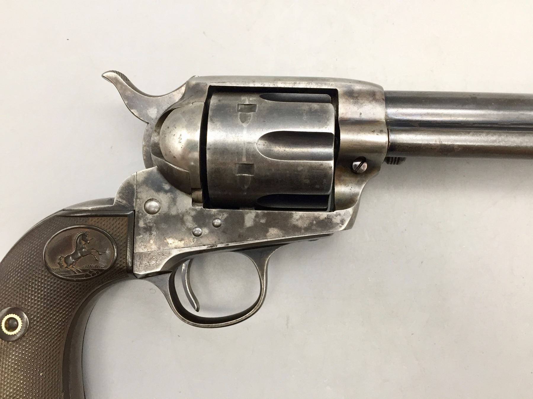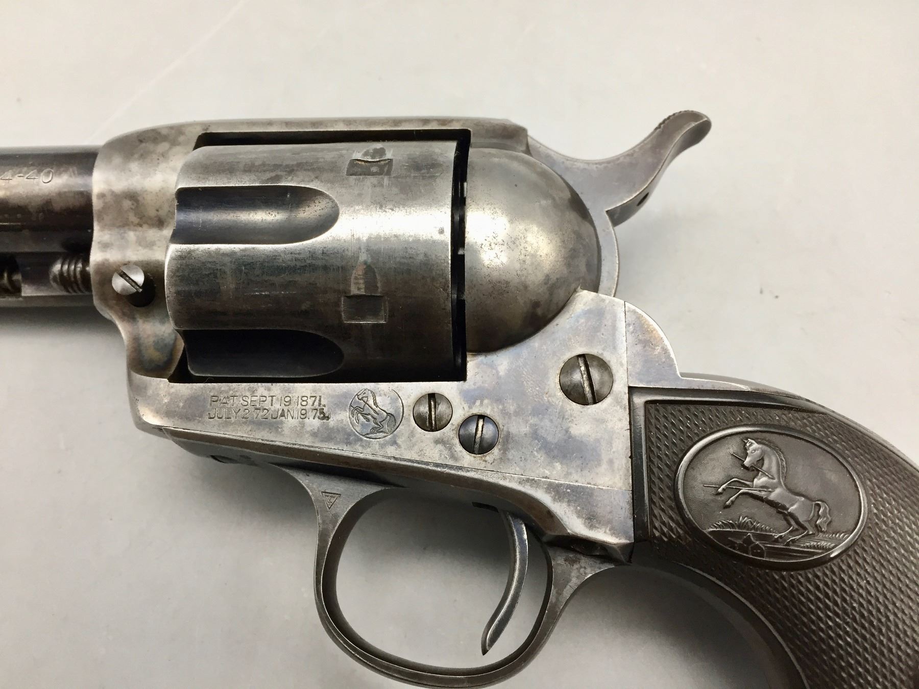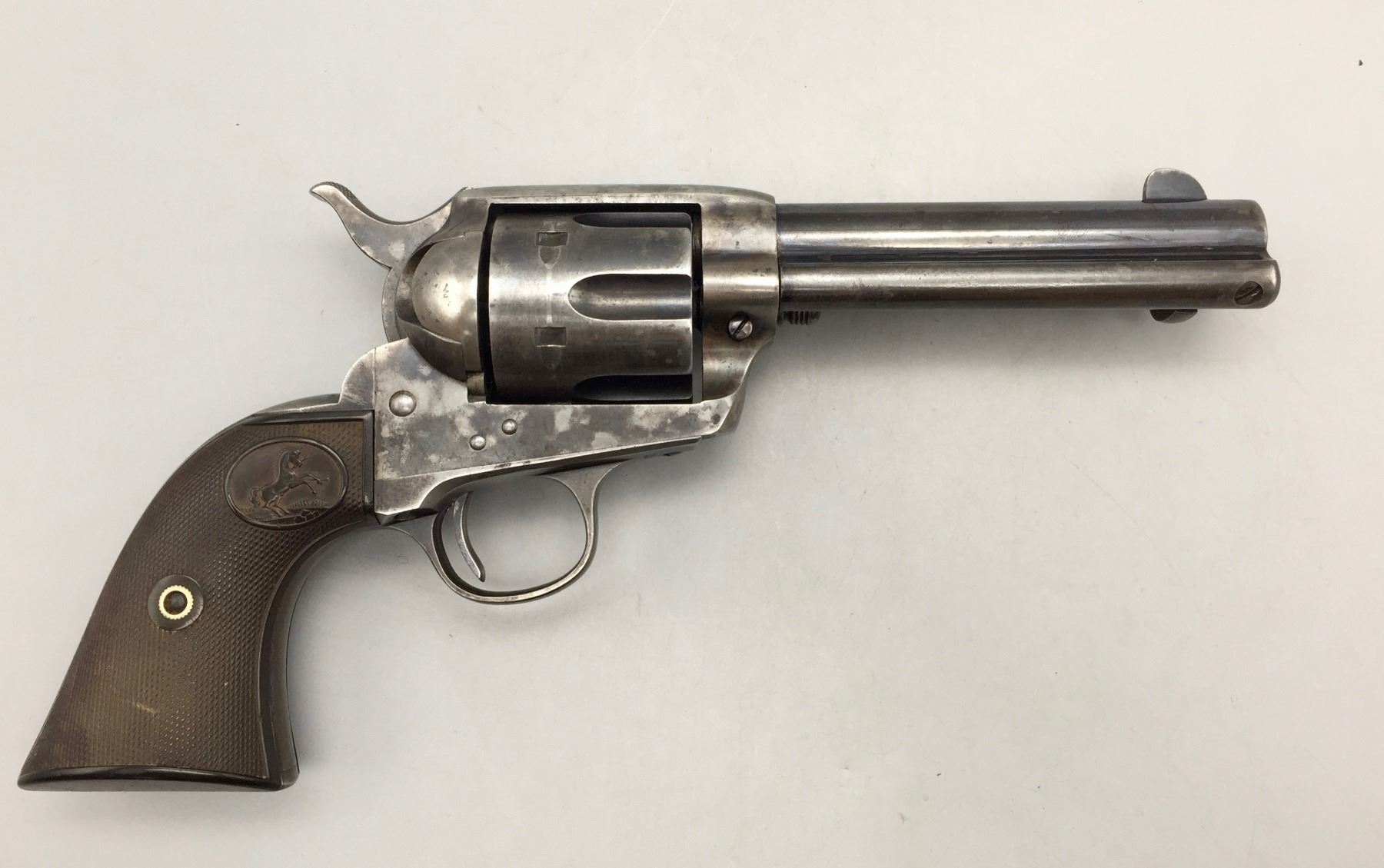 Description: Presented for sale in this lot is a Colt Single Action Army revolver featuring a blued steel finish with original grips and a custom presentation box. It is in .44-40 caliber. It comes with a Colt letter stating this was shipped to the famous Charles Ilfeld store in the New Mexico Territory during 1911 and sold to the Stanley R&L Company. The Stanley Ranch and Land Co. was a large and well-known ranch in the New Mexico Territory, south of the Santa Fe area about 30 minutes. Maker: Colt’s PT. F.A. Mfg. Co., Hartford, Conn. Approx. Age: October 30, 1911. Size: 4-3/4” barrel. Condition: Pretty good for its age, moderate wear expected. Please look closely at the pictures - they are an important part of our description. Shipping: There will be a $10 handling / packaging fee for shipping this lot. The actual cost of postage will be added on top of that. *****This firearm requires an FFL Transfer*****