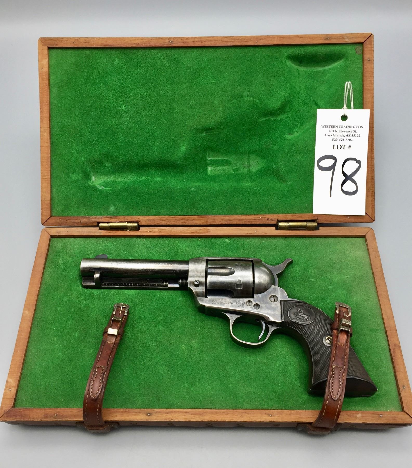 Firearms: Any person(s) bidding on firearms in our auction are required to be at least 18 years of age for long guns and 21 years of age for hand guns. Western Trading Post llc. is a licensed and practicing Federal Firearms Licensed (FFL) dealer. Any Bidders who desire to bid on and purchase any firearms in our auctions cannot have been convicted of a felony, have any restraining orders, or have any reason that they would not pass a NICS FFL Background Check. Western Trading Post llc. reserves the right to run a NICS FFL Background check on any purchaser of firearms. If the Bidder is a resident of the state of Arizona, they may pick up in person once cleared by the NICS FFL Background check. Otherwise, firearms will be shipped to a Federal Firearm Licensed Dealer of your choosing nearest your residence. The Buyer agrees to pay for any and all shipping/handling/fees/etc. necessary for the shipping and transfer of any firearms. Antique firearms and black powder replica which are exempted from NICS FFL background checks can be transferred directly to the purchaser (where legal to do so).