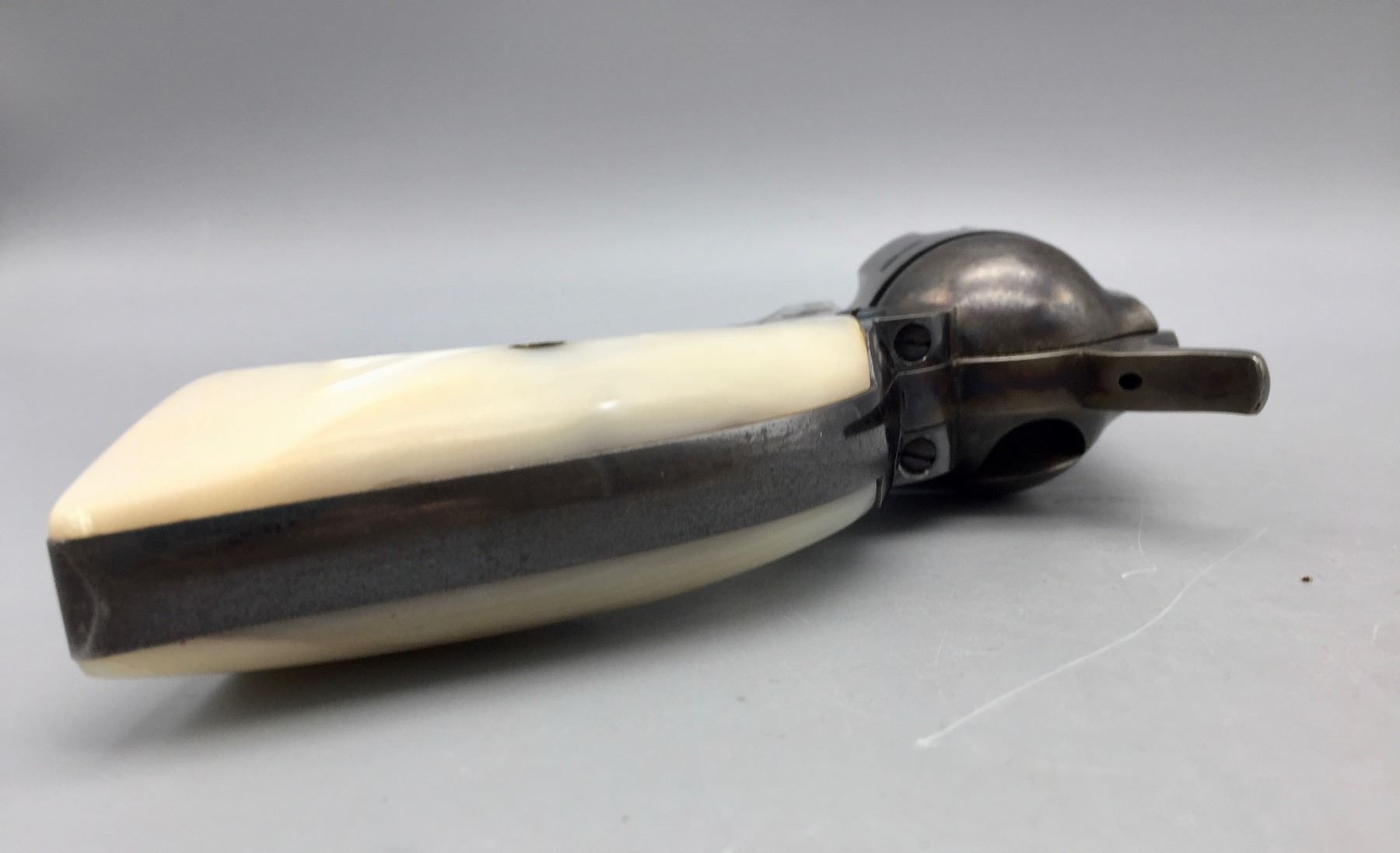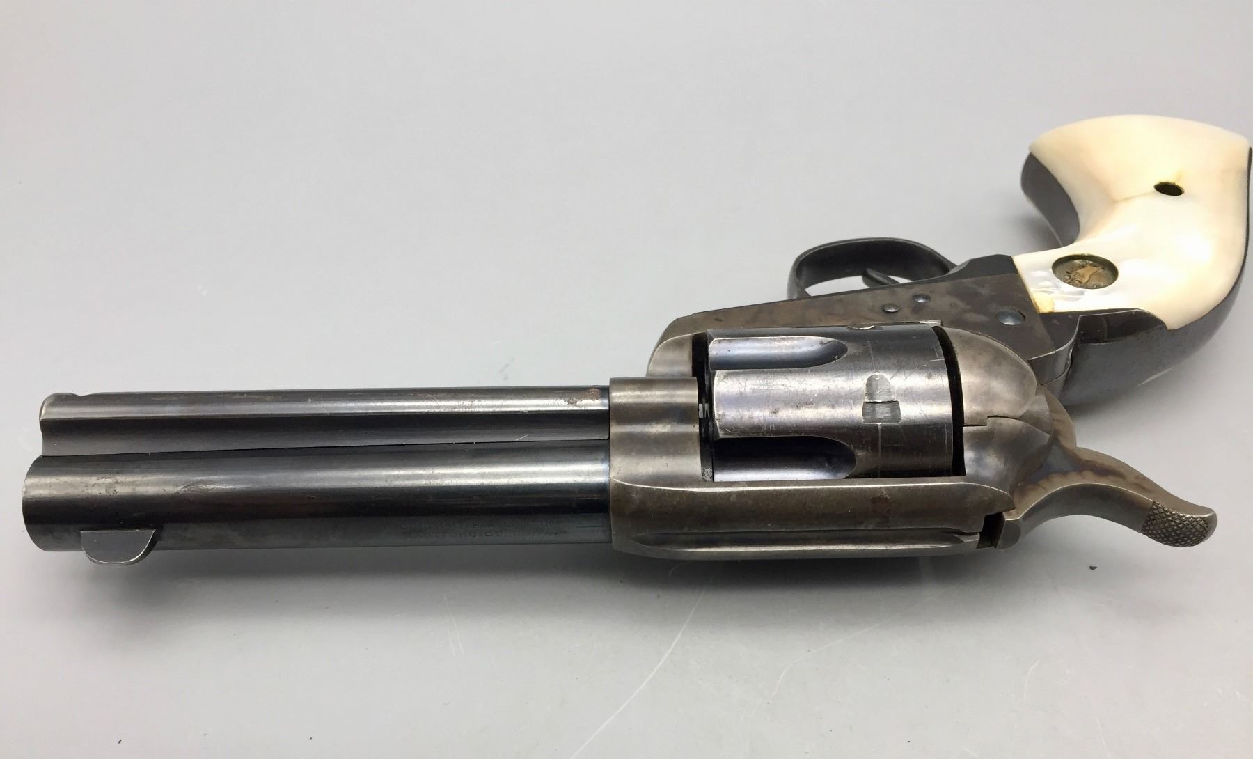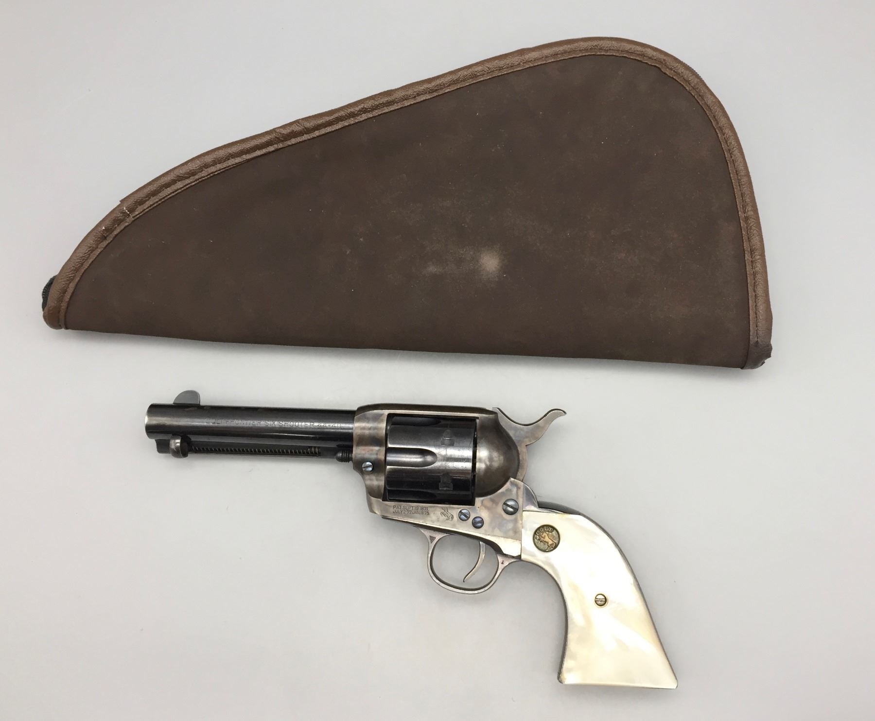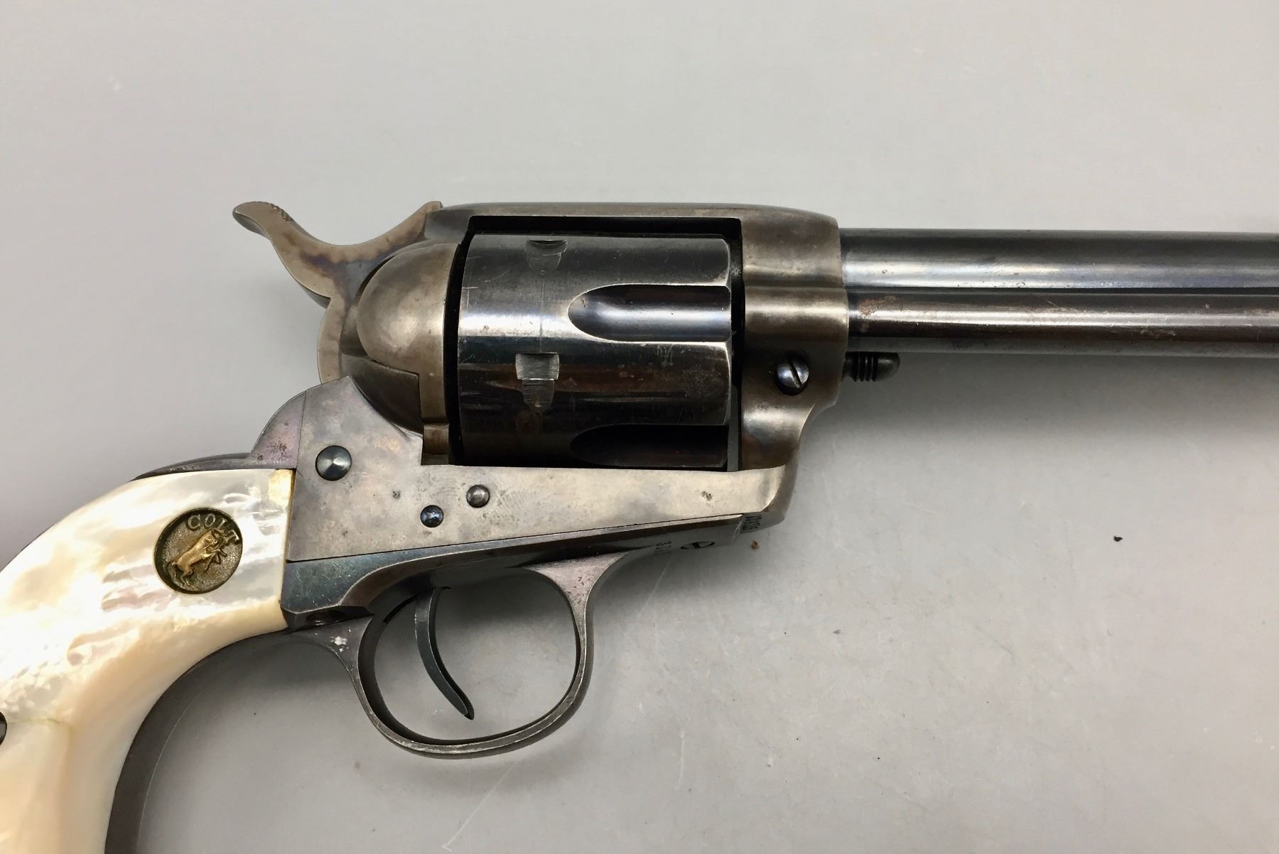 Description: Available for sale in this lot is this Colt Single Action Army revolver featuring a blued steel finish and pearl handled grips. It is in .44-40 caliber and has a letter stating is was shipped to the famous Charles Ilfeld store in the New Mexico Territory, ? Winchester Repeating Arms. The frame was case hardened. This is a rare example of a true, 98+% Colt from the early 1900s! A Colt SAA in this condition books at 10K plus! Maker: Colt’s PT. F.A. Mfg. Co., Hartford, Conn. Approx. Age: July 17, 1915. Size: 4-3/4” barrel. .44-40 cal. Condition: Very good for its age, minor wear expected. Please look closely at the pictures - they are an important part of our description. Shipping: There will be a $10 handling / packaging fee for shipping this lot. The actual cost of postage will be added on top of that. *****This firearm requires an FFL Transfer*****