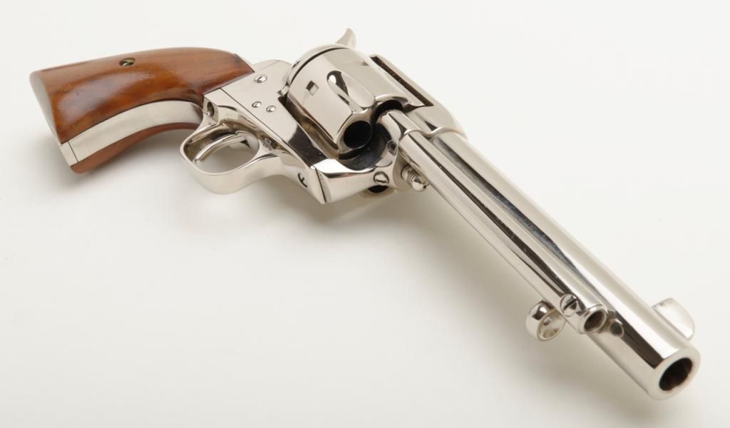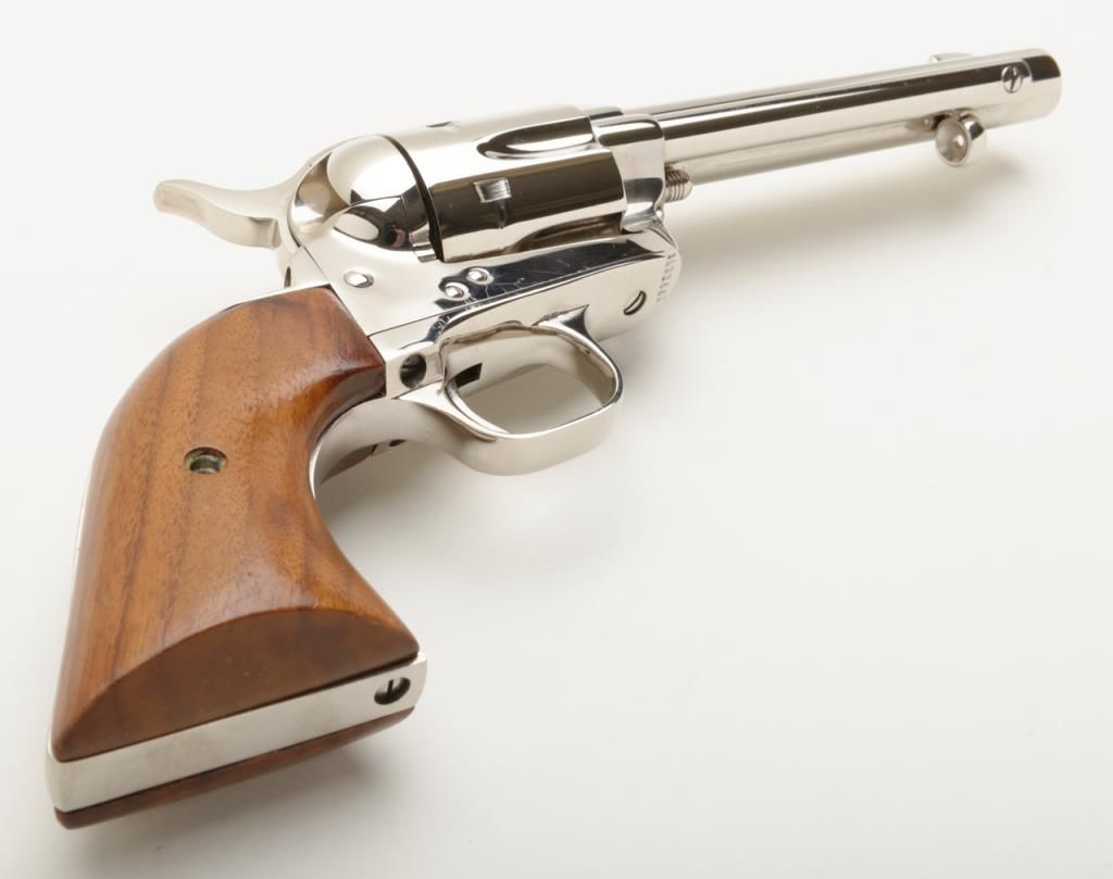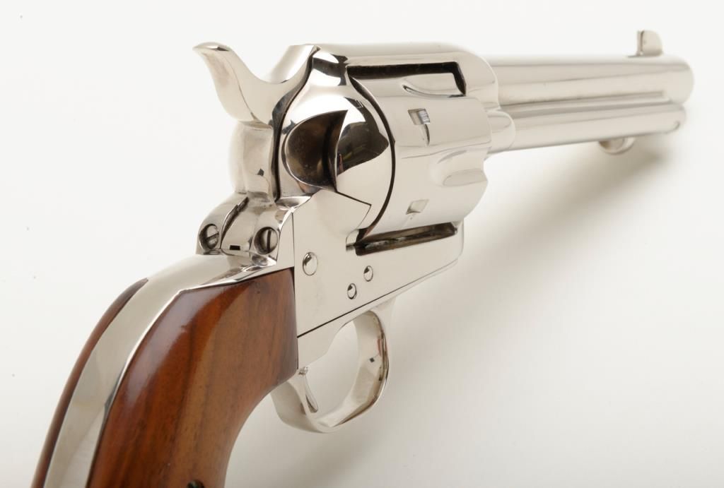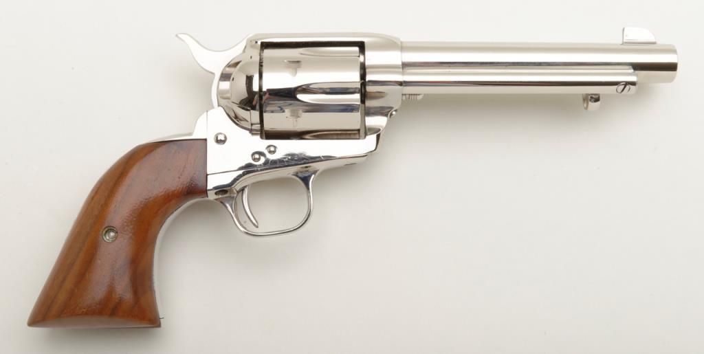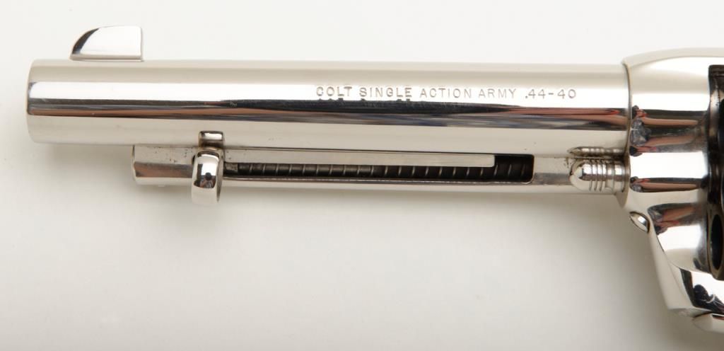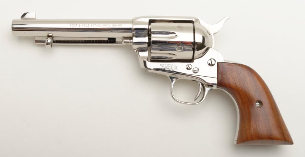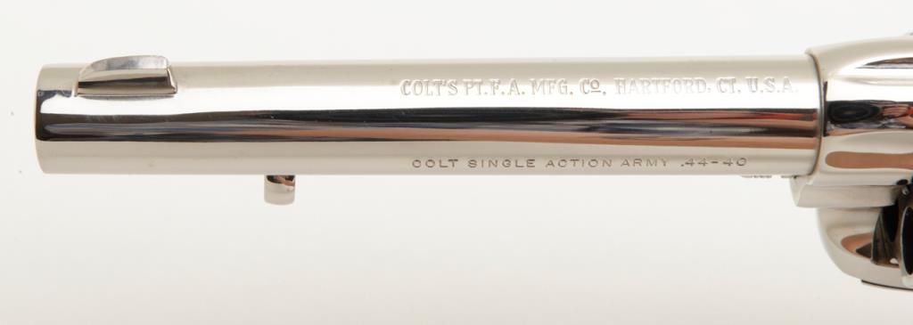 Colt SAA 3rd Generation revolver, .44-40 cal., 5-1/2” barrel, nickel finish, smooth wood grips, #SA93440 in like new condition showing little use or handling. (C&R/PPT). Est.: $800-$1,600.