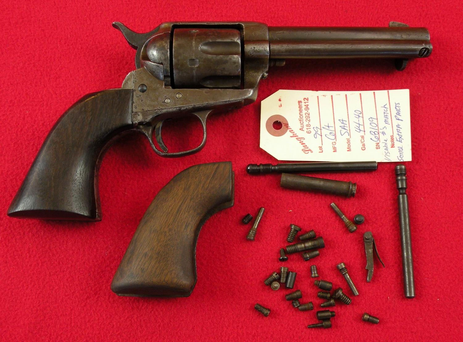 Roll die marked "Colt Frontier Six Shooter", black powder frame, 4 3/4" barrel, visable numbers match with extra grips, cylinder pins, and screws, seems to function great, SN 68109