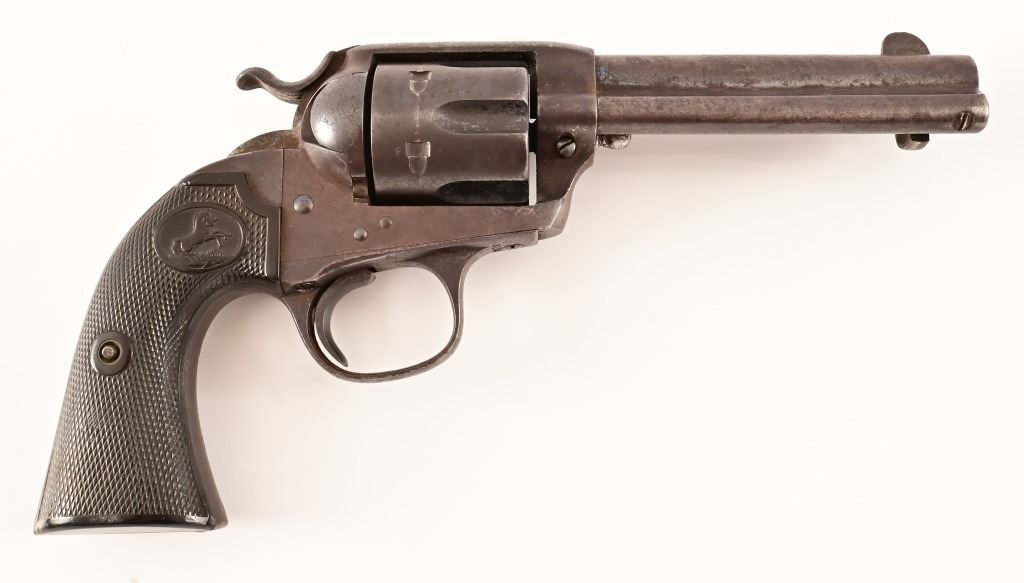 S/N 312052. Blue finish, 4.75" barrel, checkered Rampant Colt grips.