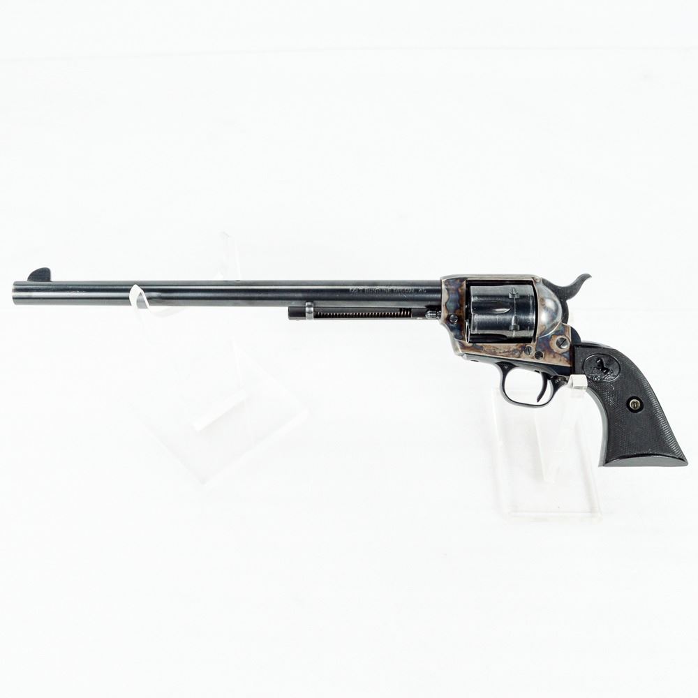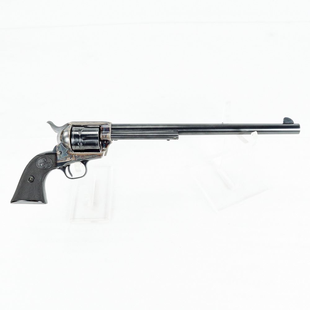 Colt SAA Buntline Special cal .45LC 12" barrel, case colored frams, black Colt grips. Small drag line on cylinder. 2nd generation. MFG 1959, C&R Eligible, S/N: 25876SA