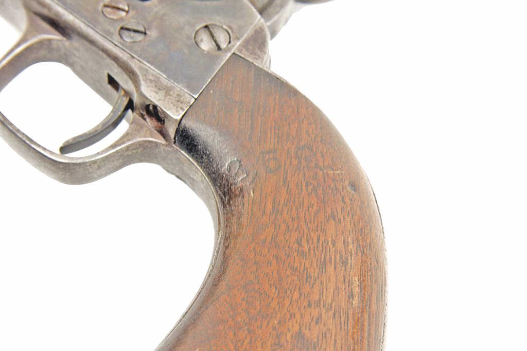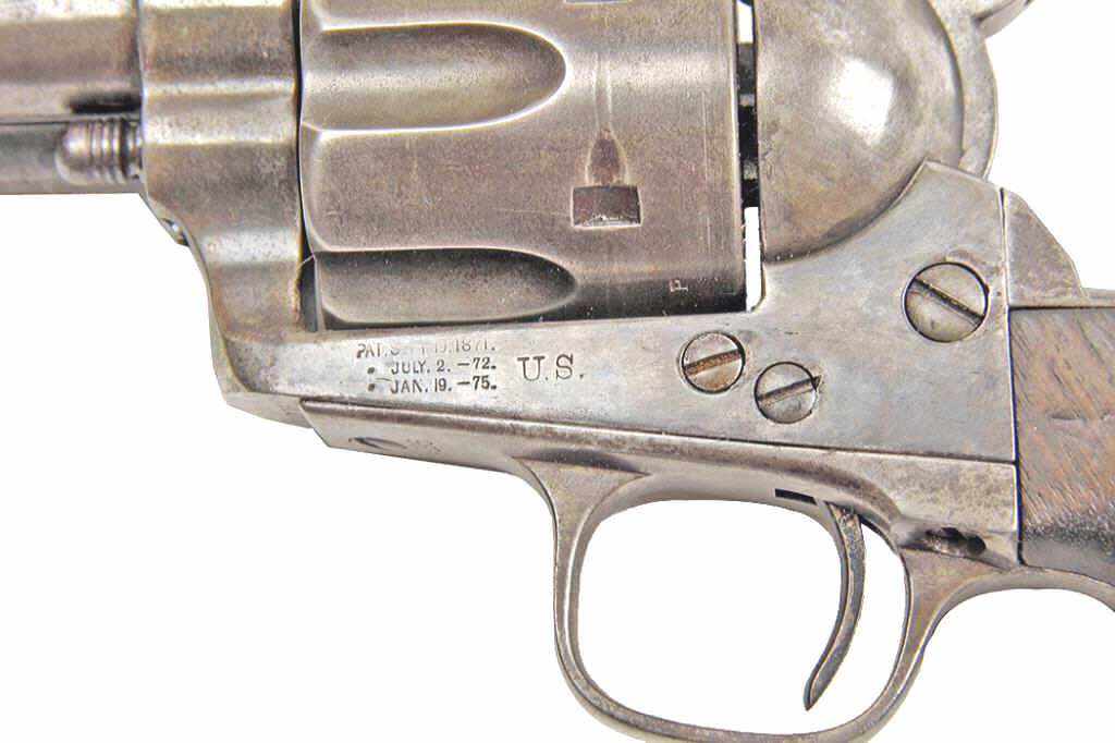 Colt SAA Cal .45 SN:34196 Revolver is US Cavalry issue with "JTC" inspections and L.D., 7 1/2" BBL. The revolver shows restoration, remarks, and stretching of the barrel. The quality of the work is very good and appears authentic until examined by an expRevolver is US Cavalry issue with "JTC" inspections and L.D., 7 1/2" BBL. The revolver shows restoration, remarks, and stretching of the barrel. The quality of the work is very good and appears authentic until examined by an expert. Itis a real US Cavalry issue, just extensively restored. An all original Louis Draper and JTC. would fetch $20-$40,000.
