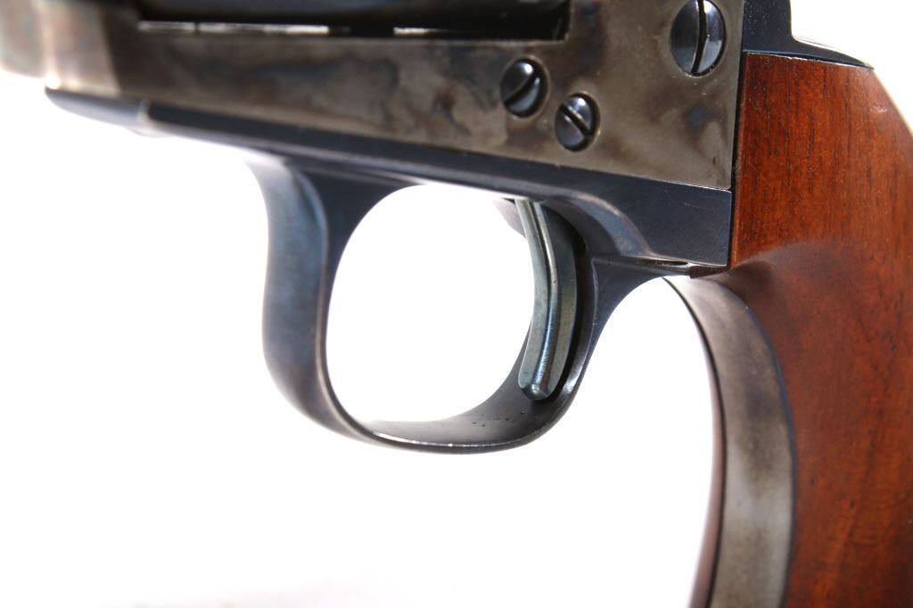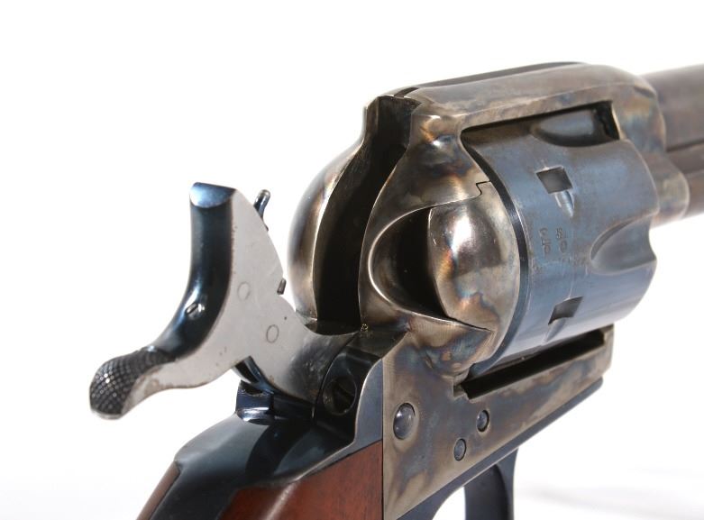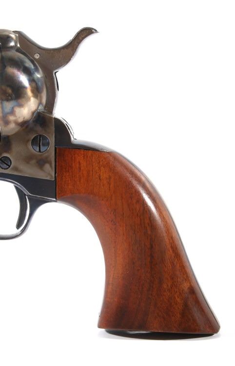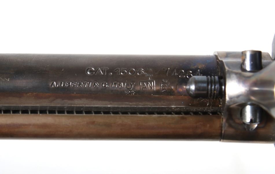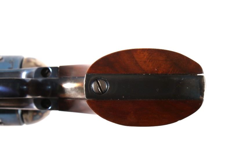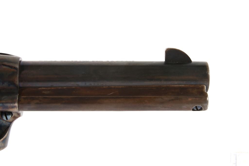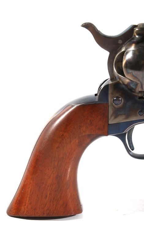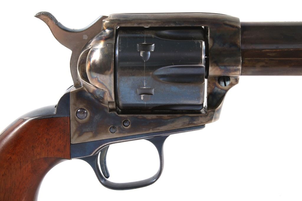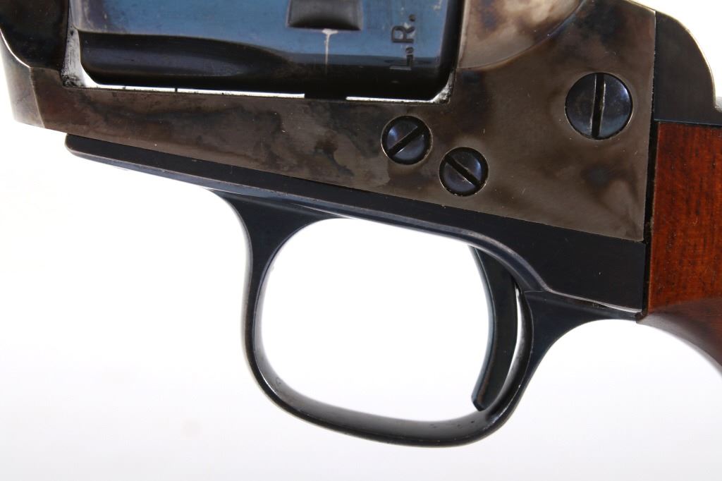 This is a Uberti/Allen F.A. Mfg. Co. Cattleman Colt Single Action revolver in the .22LR caliber. The revolver features a blue'd barrel, frame and six shot cylinder with Walnut grips. The barrel is 4" and is marked "S.A. Cal. 22 - CAT. 1506 - A. Uberti & C. Italy" on the side and bottom with "Allen F.A. MFG. Co.- Santa Fe NM" across the top. The Colt revolver shows good condition and has retained much of the original finish. The pistol measures 10.25" long overall with a 4" barrel. Serial number is 74264. This firearm qualifies as a Modern Firearm, and requires FFL Transfer or NICS Background Check. Ben