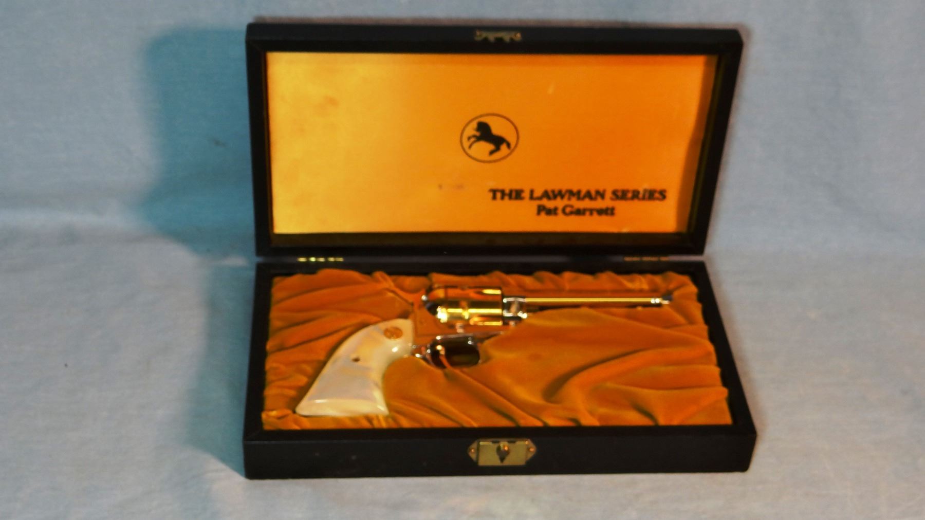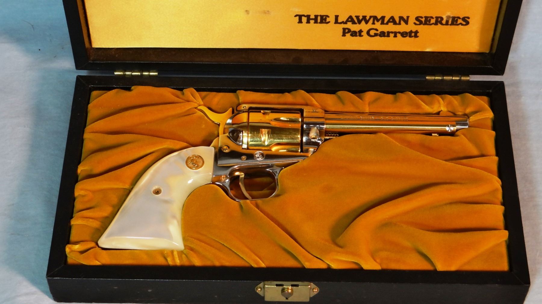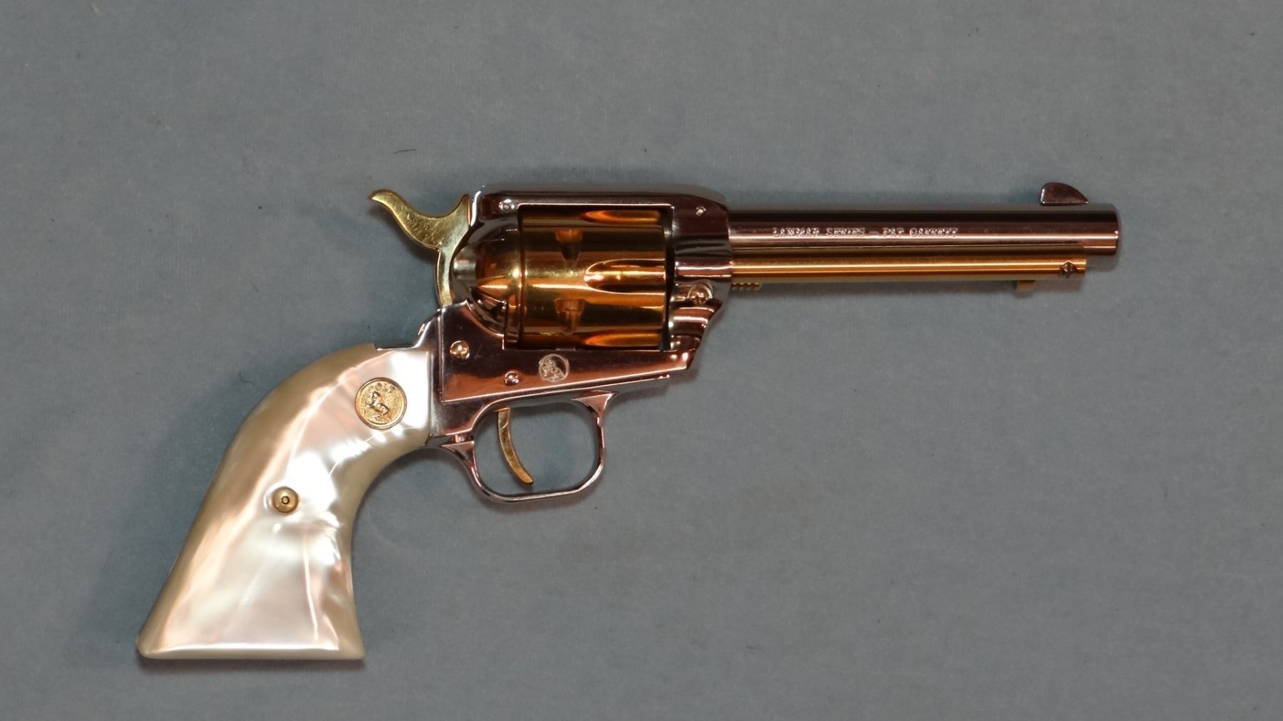 Colt SAA Frontier Scout, .22 LR, Lawman Series, Pat Garrett, gold plated, pearl grips, 4 3/4", sn: 1
