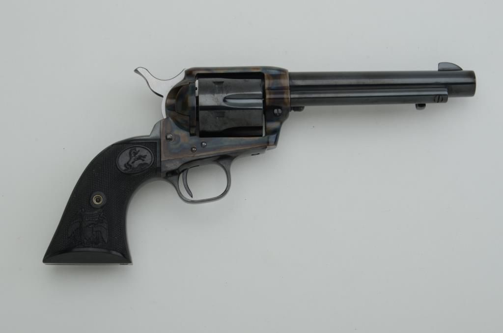 Colt SAA revolver, .32-20 cal., 5-1/2” barrel, blue and case hardened finish, checkered hard rubber eagle grips, #S39292A, in factory two-piece blue cardboard box. This gun is in like new condition showing littlehandling and beautifully vivid case colors on the frame. Est.: $900-$1,800.