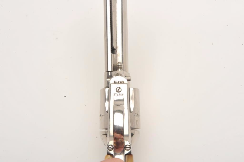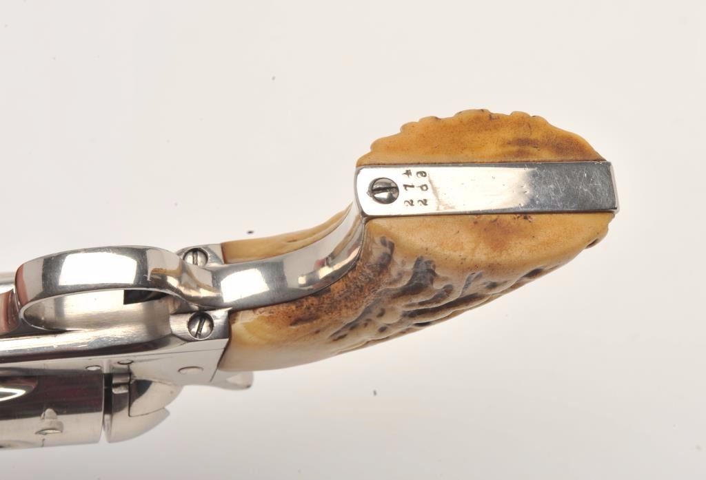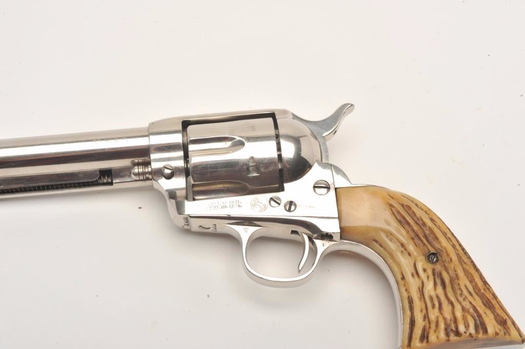 Colt SAA revolver, .32 W.C.F. caliber, 5.5” barrel, old re-nickel finish, stag grips, S/N 274289,