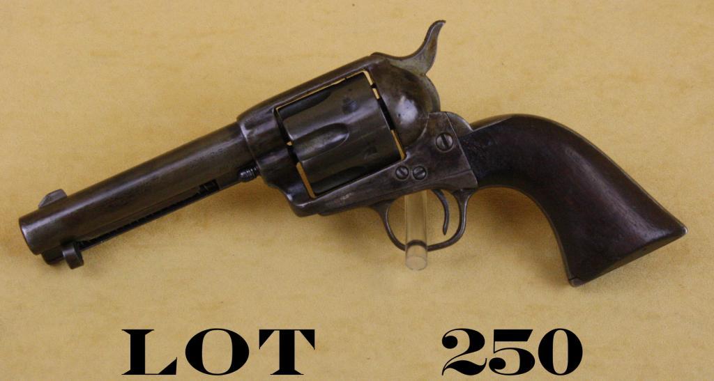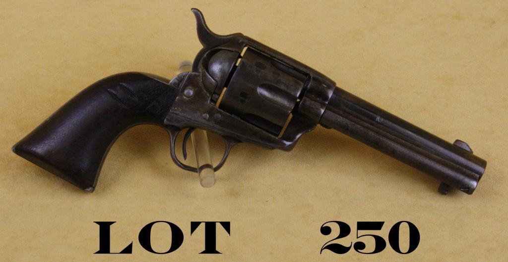 Colt SAA revolver, .32 WCF cal., 4-3/4” barrel, two line patent address, wood grips, #17464. This