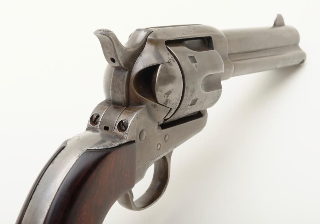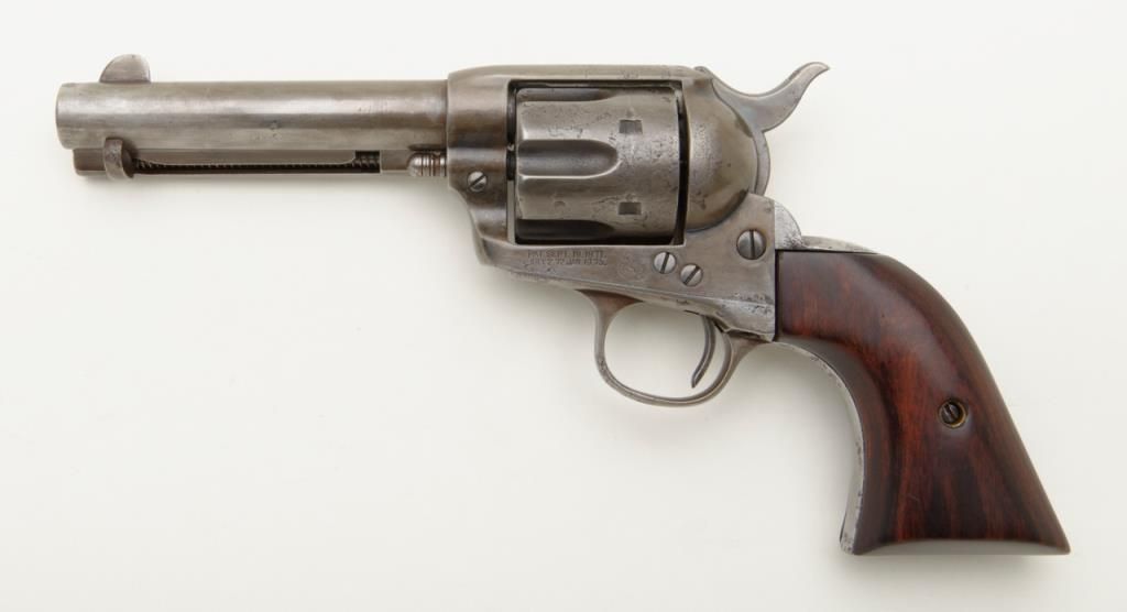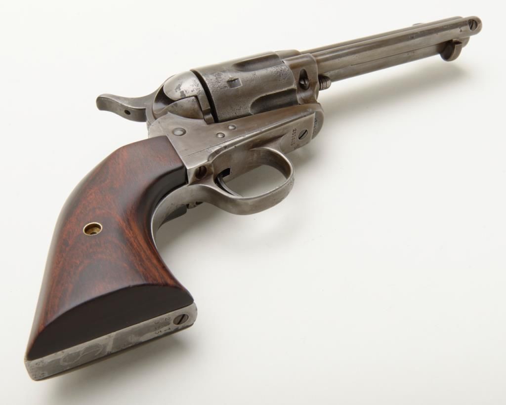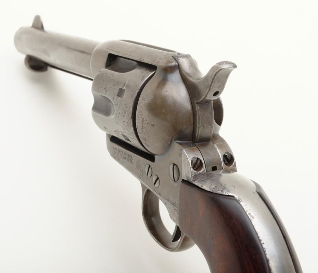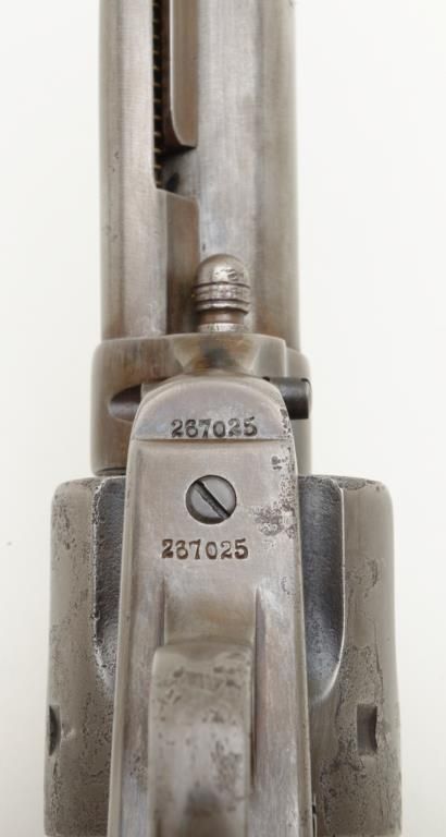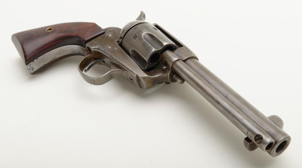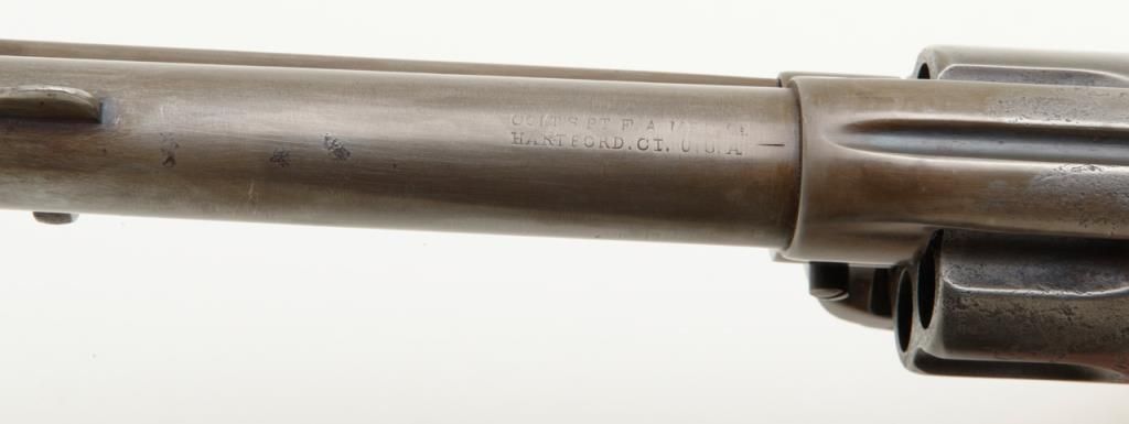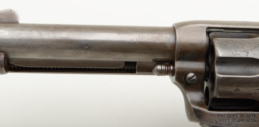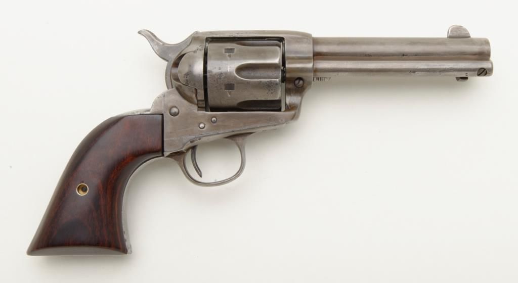 Colt SAA revolver, .41 cal., 4-3/4” barrel, cleaned blue finish, some pitting, good action, fair bore, replaced wood grips; factory letter confirms features except grips not listed, shipped to Norvell Shapleigh Hdw. Co., St. Louis, MO on June 29, 1905, 5 guns in shipment. (C&R/PPT). Est.: $800-$1,600.