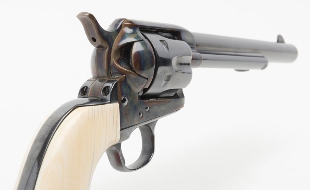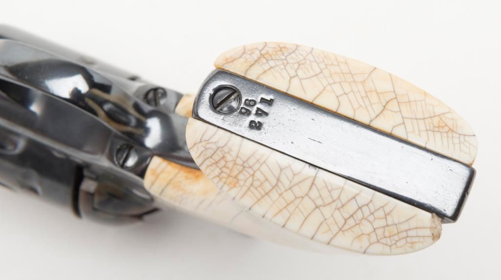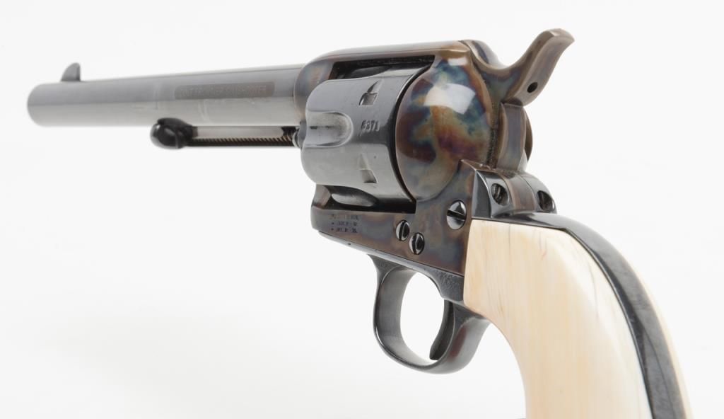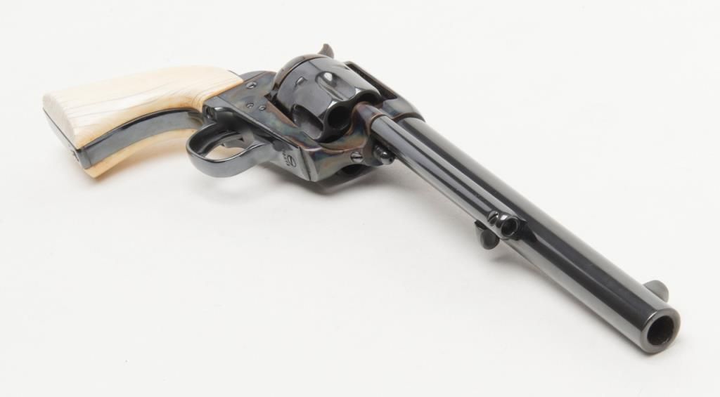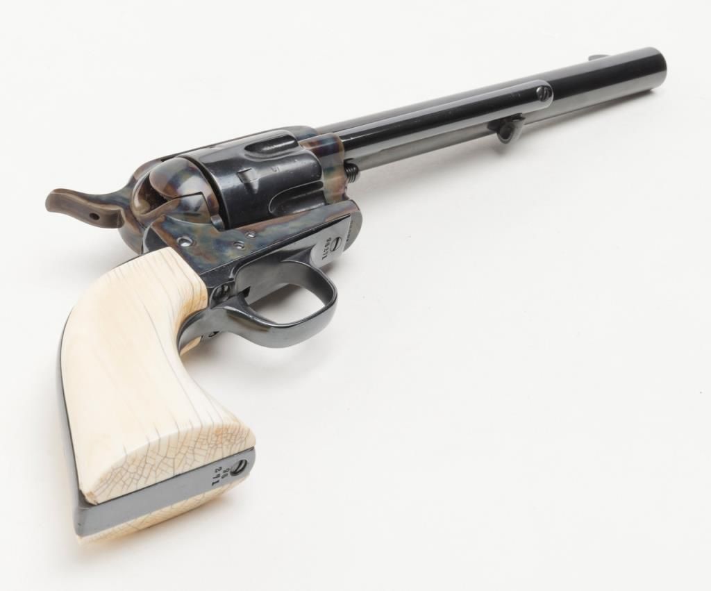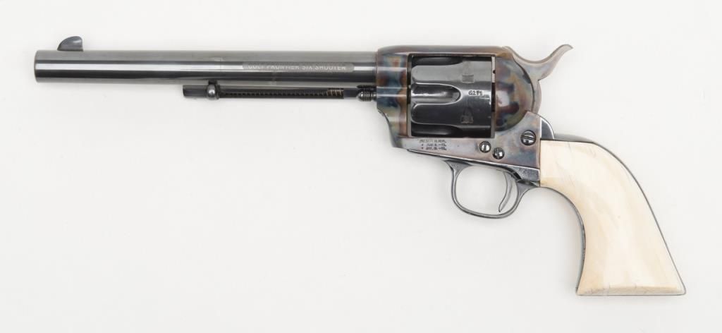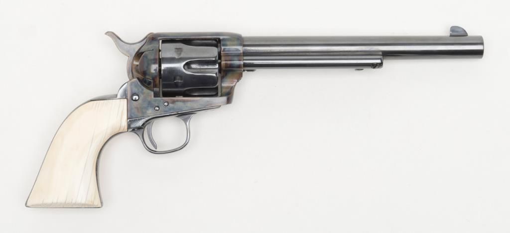 Colt SAA revolver, .44-40 cal., 7-1/2” barrel, etched panel, blue and case hardened finish, ivory