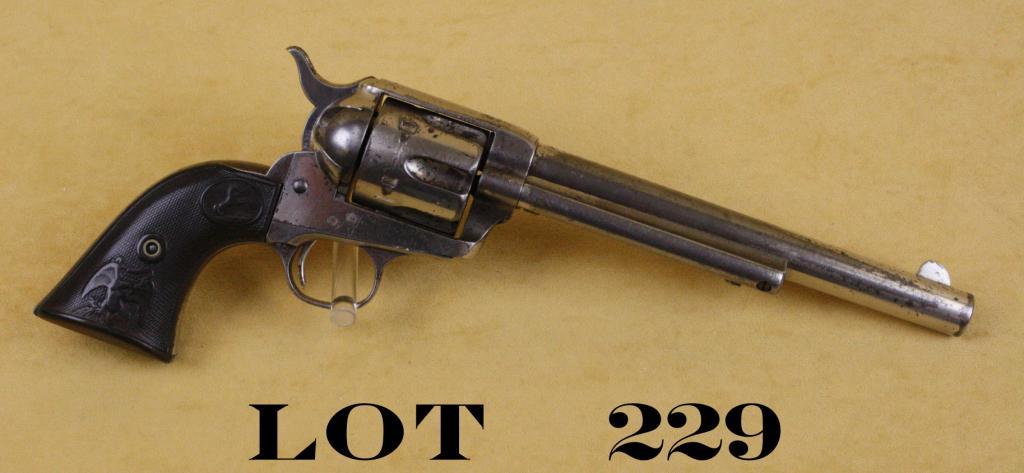 Colt SAA revolver, 44-40 cal., 7-1/2” barrel, nickel finish, checkered hard rubber eagle grips, #1