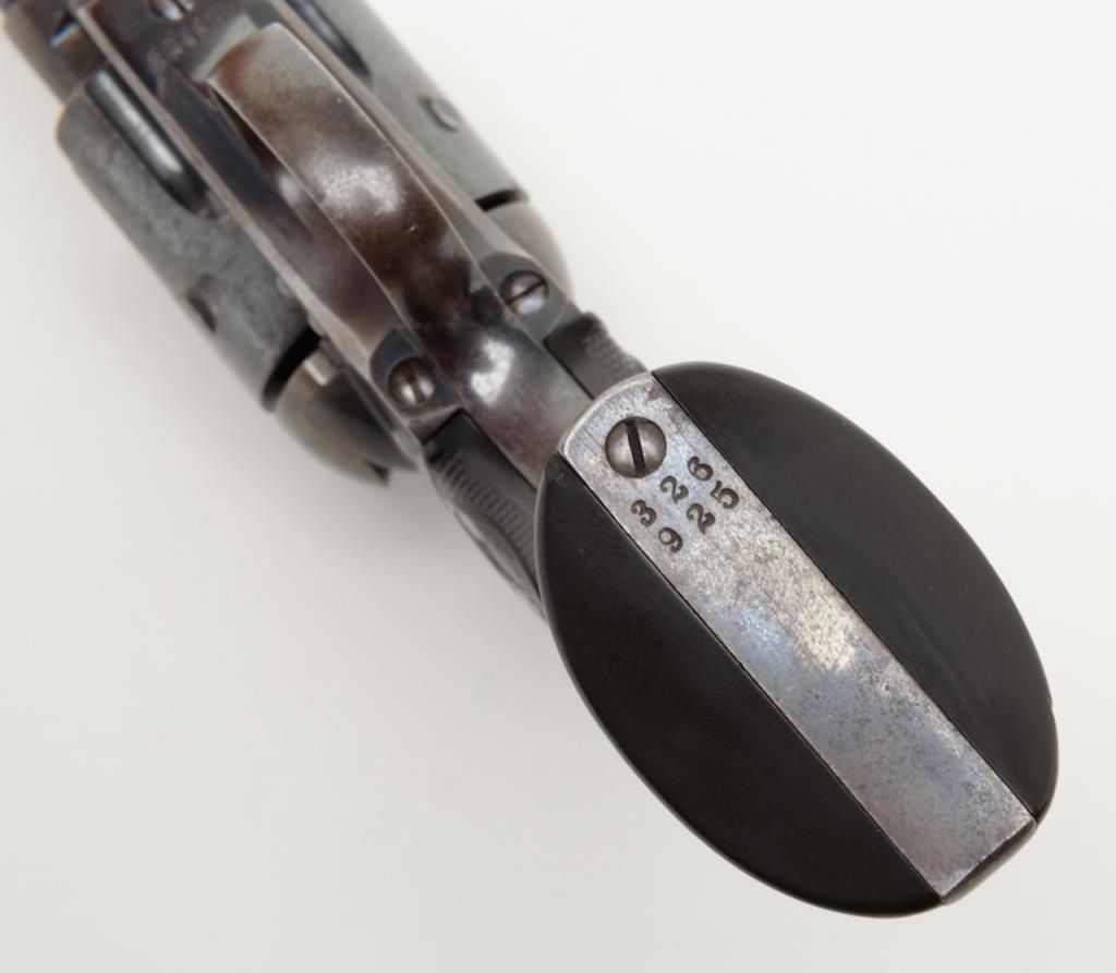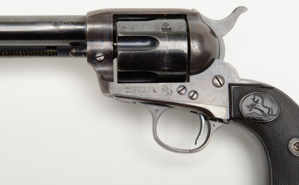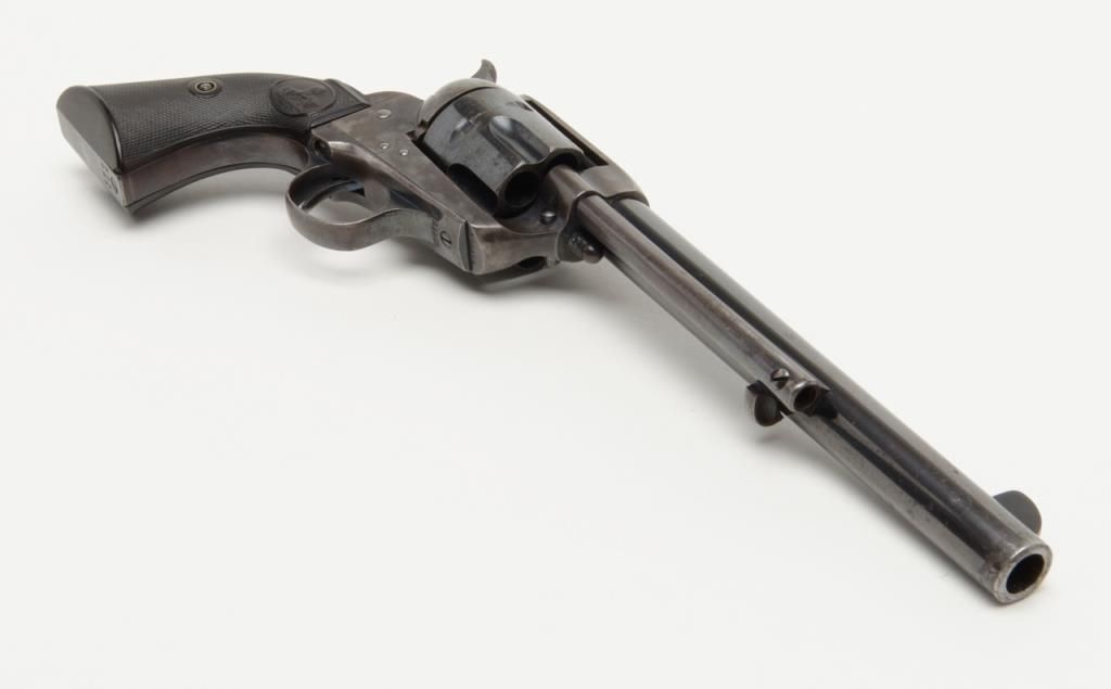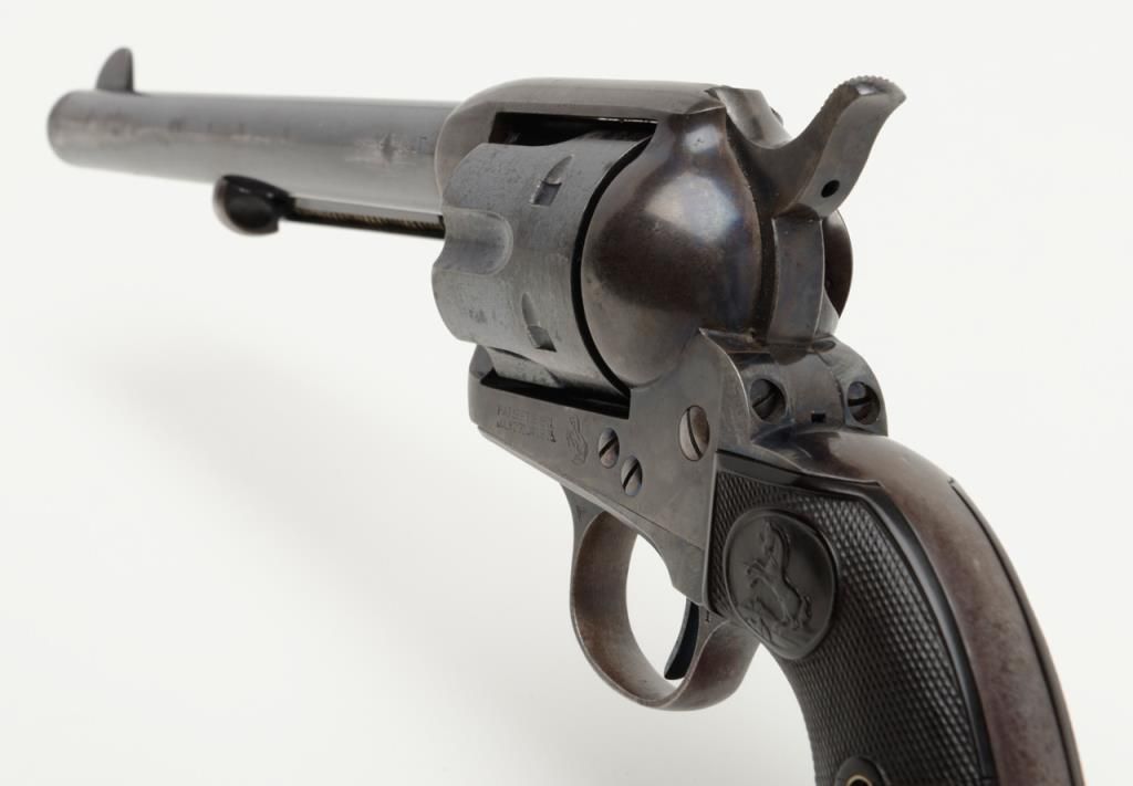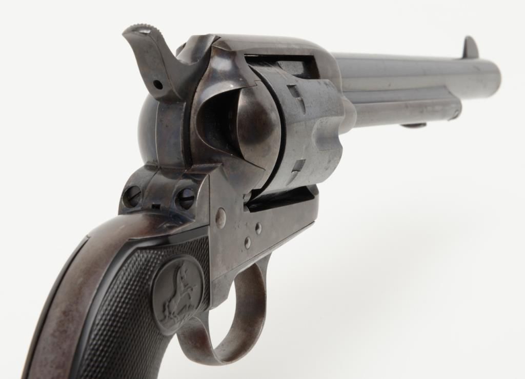 Colt SAA revolver, .45 Colt cal., 7-1/2” barrel, blue and case hardened finish, checkered hard rubber grips, #326925 in overall fine condition showing the majority of its original blue finish with some spots of erosion and majority of itsmuted case colors on frame and hammer; fine bore, crisp action, sharp markings and fine grips; no factory letter but consignor indicates Colt advises gun was shipped to Montgomery Ward. (C&R). Est.: $3,500-$7,000.