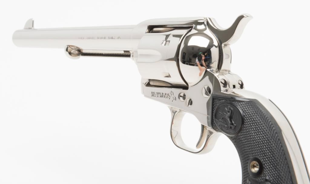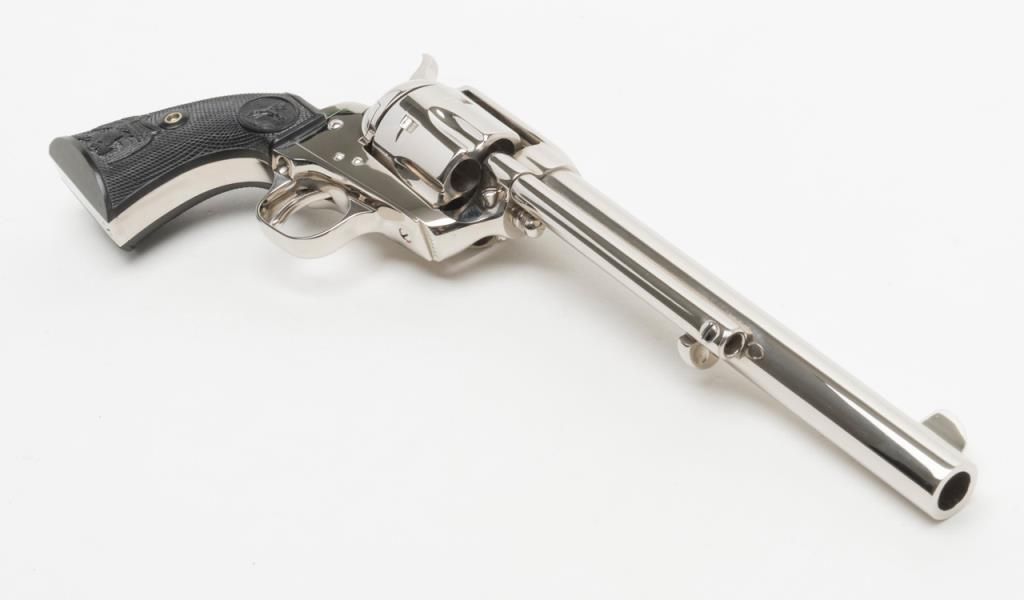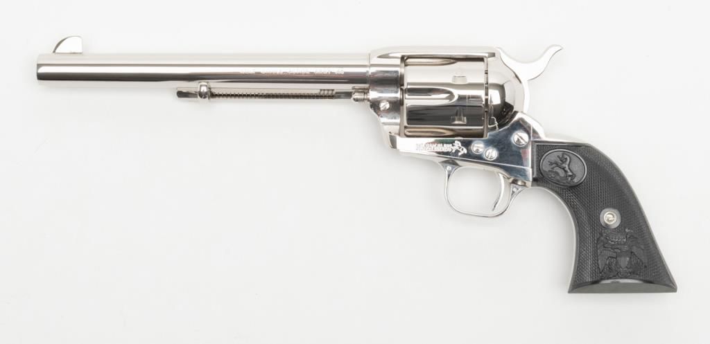Colt SAA revolver, .45 cal., 7-1/2” barrel, nickel finish, hard rubber eagle grips, 4th Generation,