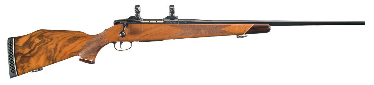 Manufactured for Colt by J.P. Sauer & Son of West Germany. The barrel was manufactured without sights and has scope bases and rings mounted on the receiver. Fitted with one piece high gloss stock with a checkered forearm and pistol grip with a rosewood forend tip and grip cap with the Rampant Colt, raised comb, cheekpiece and black rubber vented Colt Sauer recoil pad. Complete with two extra magazines. Colt discontinued this rifle in 1985.