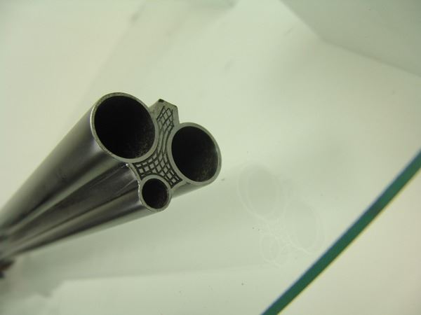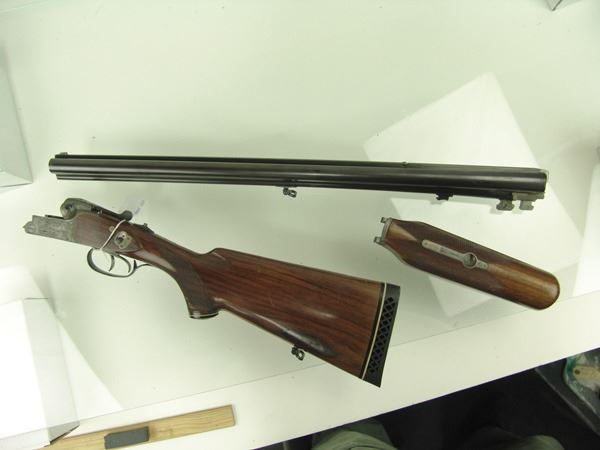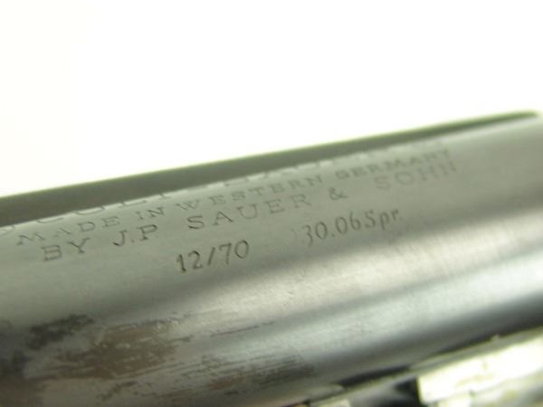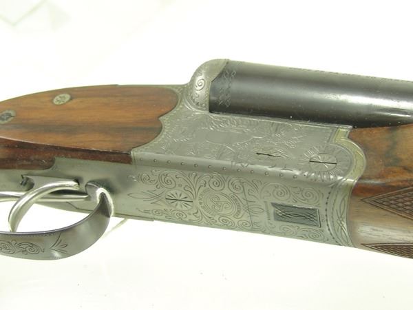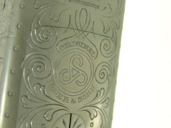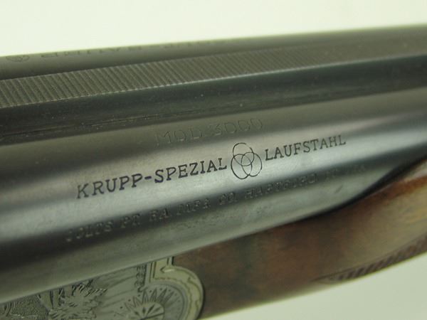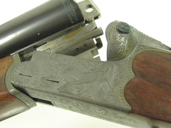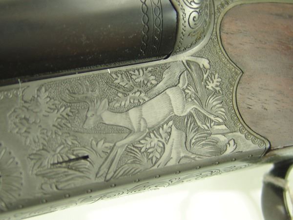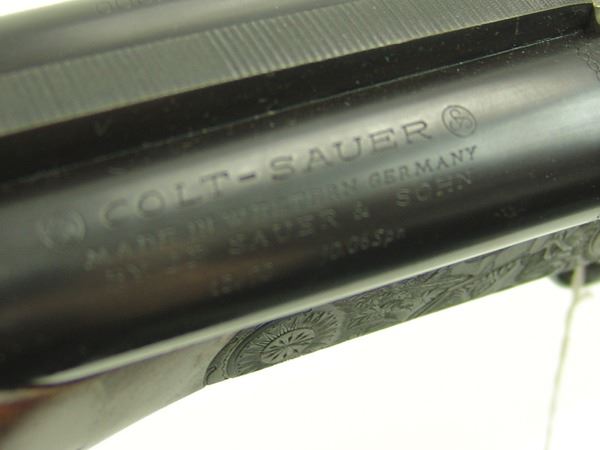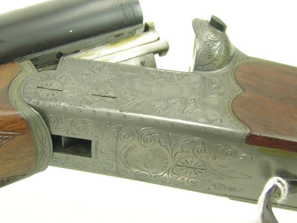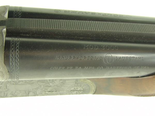 Ca. 1970s 42" Beautiful, model 3000, 12GA/30.06 SPL cal. combination rifle and double barrel shotgun with 25" barrels, the receiver expertly engraved with both bull and buck figures on the sides of the magazine. Very good condition. S/N G5793.