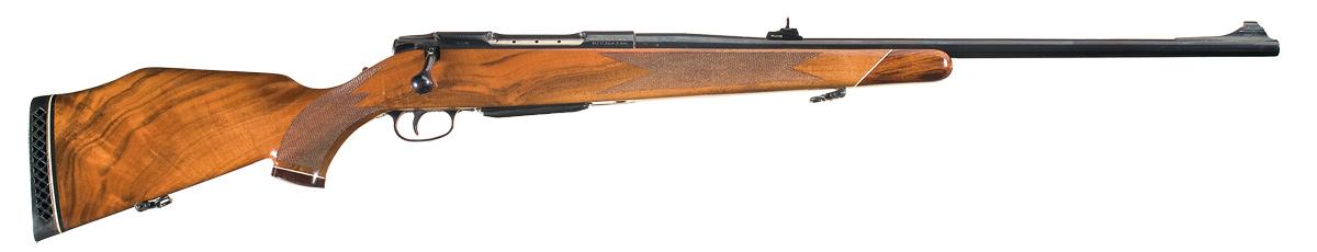 Manufactured for Colt by J.P. Sauer & Son of West Germany. The rifle features a non-rotating bolt, ramp front and adjustable Williams rear sights, with the top of the receiver drilled and tapped for scope mounts. Mounted with a one piece high gloss stock with a checkered forearm and pistol grip with a rosewood forend tip and Rampant Colt grip cap, raised comb, cheekpiece, black rubber vented Colt Sauer recoil pad and sling swivels. Colt discontinued this rifle in 1985.