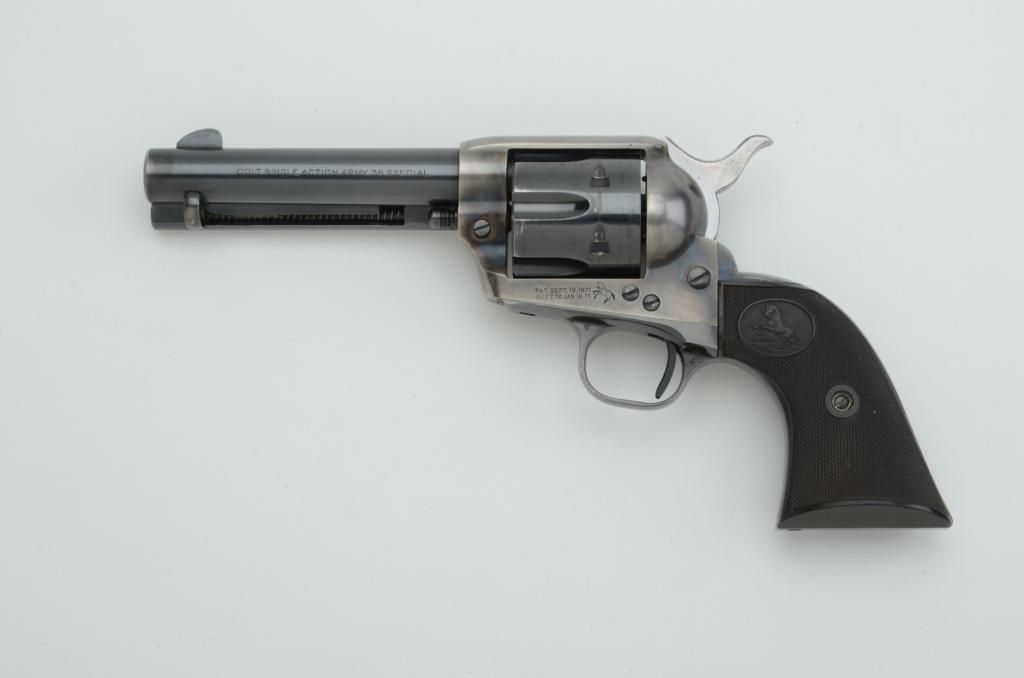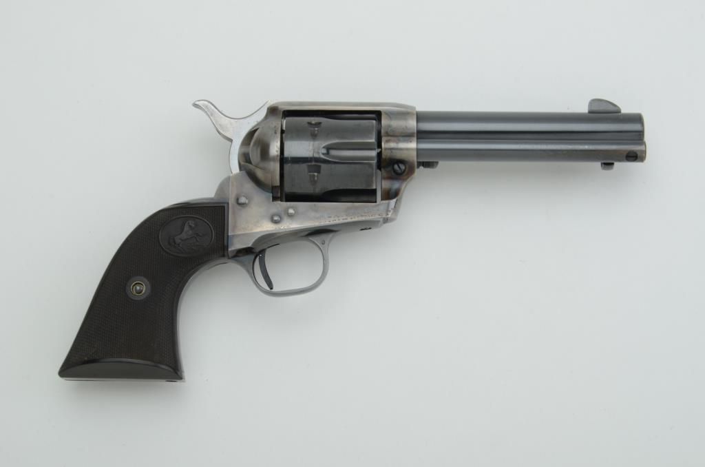 Colt Second Generation SAA revolver, .38 Special cal., 4-3/4” barrel, blue and case hardened finish, checkered hard rubber grips, #17774SA. This gun is in overall excellent condition showing approx. 96% original bluefinish and approx. 98% original case hardened finish, fine bore, action, markings and grips. Est.: $800-$1,600.