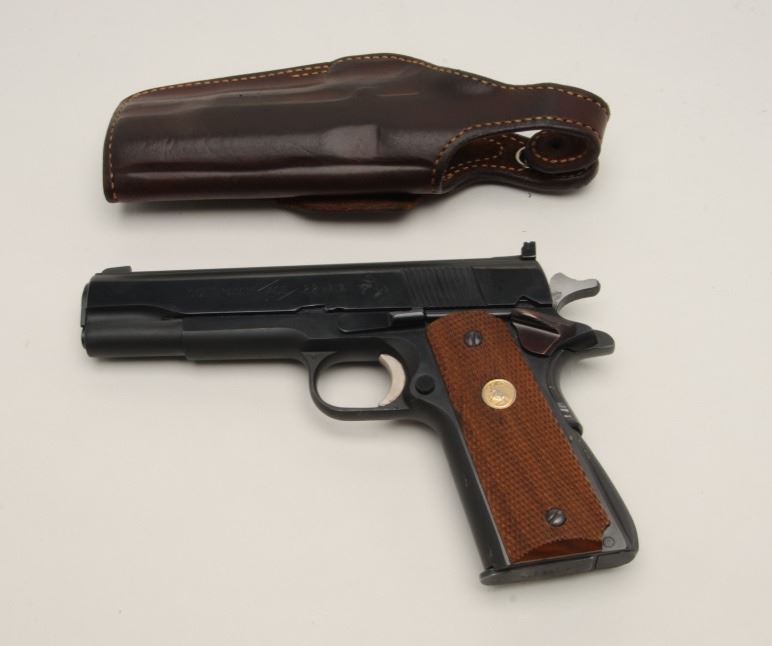 Colt Service Model Ace Semi-Auto pistol in .22 caliber, S/N SM18105. Out of production over 30 years. In fine to excellent condition showing 95%-98% finish with a few scratches and minor use. With Bianchi holster.(Modern/PPT) Est.: $900-$1800