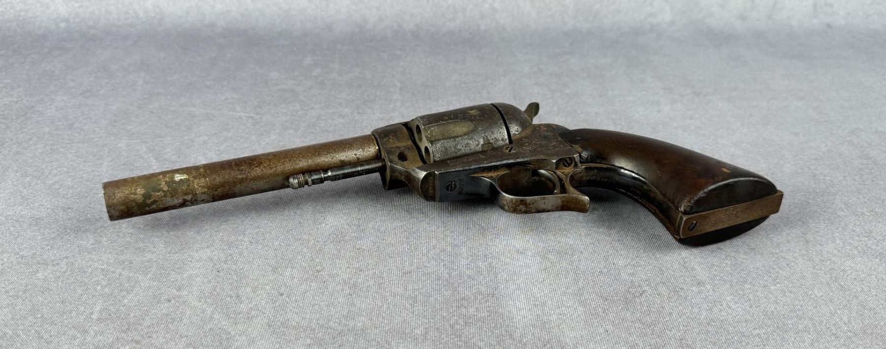 Parts gun, as found. No extractor rod, grip frame is mismatched. Action will not function. In need of repair. 5 1/2" barrel. Requires FFL Transfer, C&R not accepted.