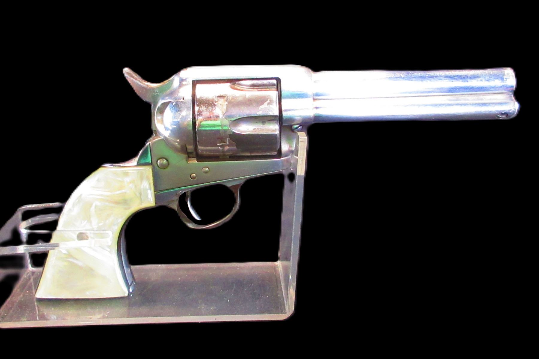 Colt Single Action Army Nickel Revolver- .45 LC- 4.75" Barrel- 1900 DOM- First Generation- Mother Of Pearl Grips- Some Flaking Of Nickel- Pretty Good Condition