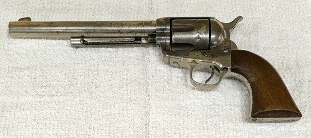 Colt Saa. 7 1/2'' Barrel. Factory Nickel Finish. Cal .45 Date 1884. It Appears The Numbers Are The Same, But They Are Hard To Make Out. Antique. See Pictures Of Numbers.