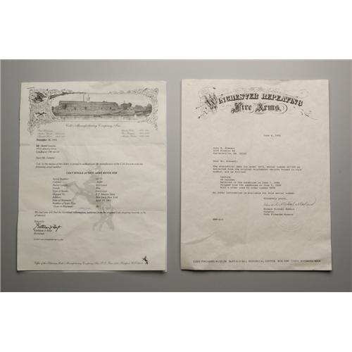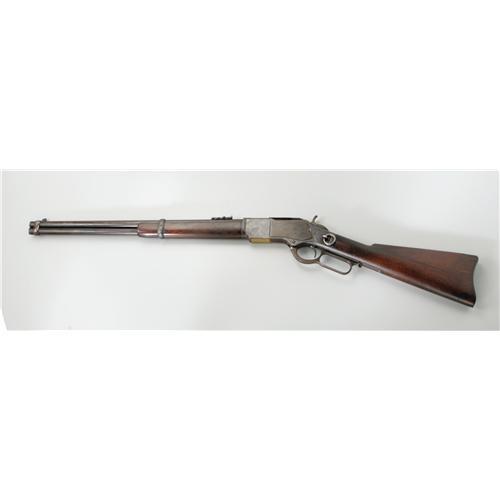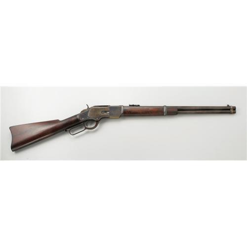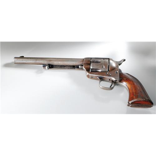 <B>Colt Single Action Army Revolver and Winchester Model 1873 Carbine.</B></I> The Colt firearm was the trusted companion of the Texas Rangers, Texas cattlemen, cowboys, and the U.S. Cavalry from 1873 thru the 1940s. Every Texas sheriff, marshall, and lawman in Texas used this gun with deadly effort and their adversaries feared their opponents expertise. This Colt pistol was also the weapon of choice because it fired the same cartridge as the Winchester 1873 rifle or carbine. In a conflict, this represented state of the art firepower. This colt single action SN. 66773, 7 1/2" barrel, 44-40, left the Colt factory in 1881 and probably saw extensive use on the western frontier. This gun is in excellent condition. All serial numbers match, the one piece walnut grips retain over 50% of their original varnish. There are traces of original blue on the ejector rod housing and there are no replaced parts. The etched panel "Colt Frontier Six Shooter" is still legible on the barrel with the patent dates correct on the frame and the one line Hartford address on the barrel. <BR><BR>The Winchester firearm has the reputation along with the Colt single action as "the gun that won the West". This gun was light, efficient, and a multi-shot repeater that fired the same cartridge as the Colt single action. It was widely used with deadly force from 1873 through the 1890s. This particular firearm Model 1873, SN #267328, left the Winchester factory in 1888. All carbines had a 20" round barrel and this 1873 carbine is a 44-40. The original saddle ring is intact and the original cleaning rod still in the buttstock. The stocks are in excellent original condition retaining 40% original varnish. All serial numbers match. There are no replaced parts and the gun retains 35-40% original blue with correct barrel markings, caliber designations, and original sights. This model is exceedingly hard to find and is genuine and authentic in every aspect. <I>Courtesy of J. P. Bryan, Houston.</B></I> Consigned Lot <BR><BR><b>This 2006 March Texas State Historical Association Charity Auction is being held in Austin, TX on February 12 - March 4, 2006. This is a charity auction. All proceeds from donated lots in the auction, commissions from consigned lots, and the buyer's premium go solely to the Texas State Historical Association. The floor auction session is by invitation only. Online bidding ends March 3, 2006 at 10:00PM CT. Your secret maximum bid will compete for you during the floor auction, and it is possible that you may be outbid on the floor after internet bidding closes. The applicable buyer's premium for this auction is an amount equal to 15% (minimum $9 per lot) of the successful bid on ebay. State law requires lots consigned (not donated) to THSA collect full sales tax on items that sell for a total of $5,000 or more. </b>