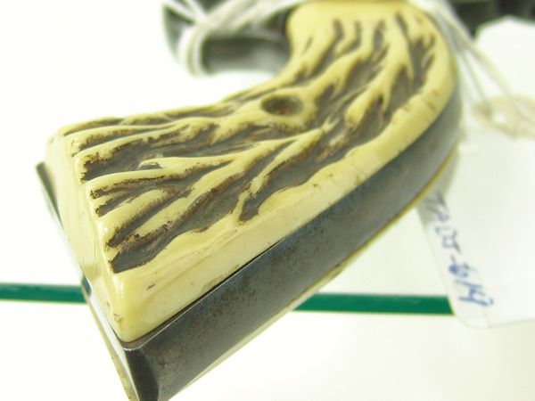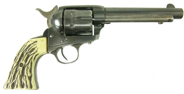Ca. 1860s 12" Beautiful "Artillery" model .41 Colt cal., 6-shot revolver with 5-1/2" (Type II - mismatched) barrel, and stag horn grips. Good condition, reblued. S/Ns 282744 & 206793
