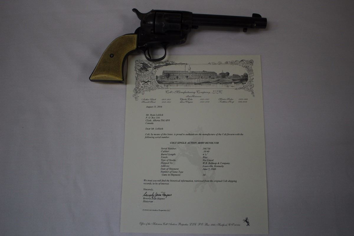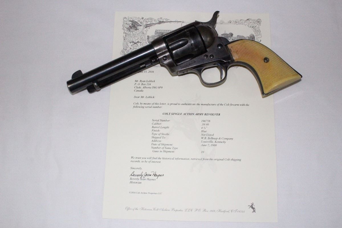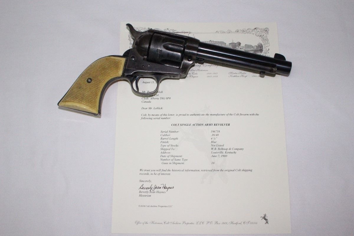 Colt; Single Action; Army; w/Colt Certificate; Revolver; 1900; 38/40; S/N 196758