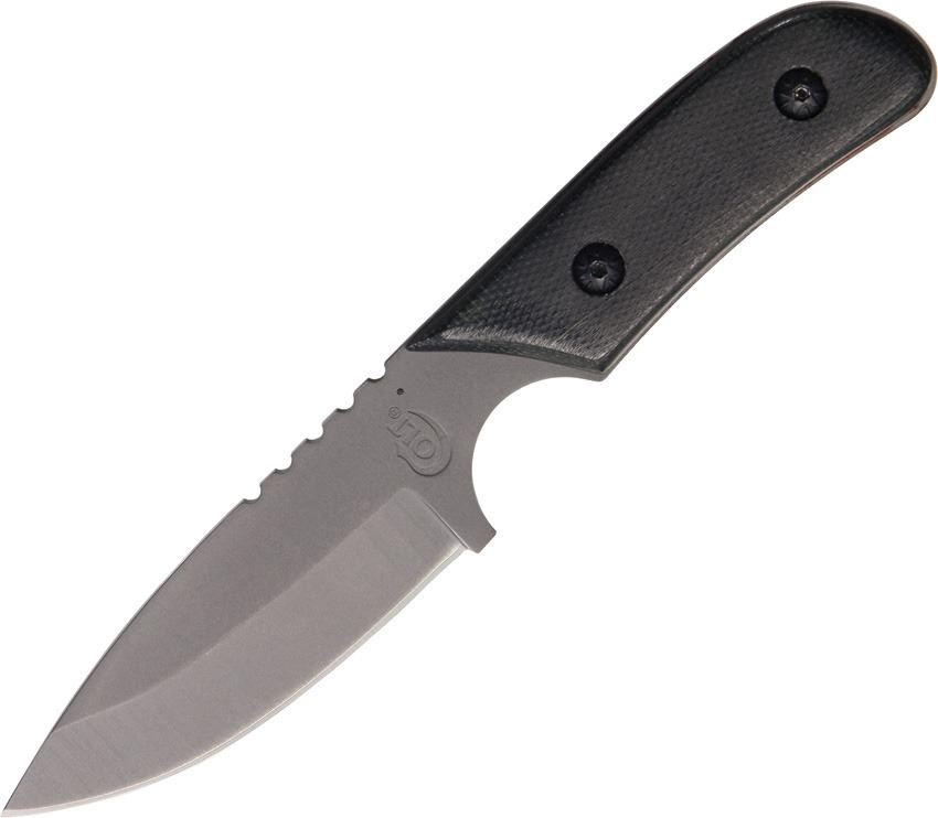 7 1/8" overall. 3" titanium coated high carbon stainless drop point blade with thumb ridge. Full tang. Smooth black G-10 handle with finger choil. Black nylon belt sheath.