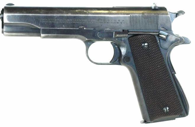 2nd year production manufactured in 1930, bright blue finish retaining 75-80% original finish showing holster wear to slide and leading edge of frame. Checkered walnut grips, sound action and correct Tu-Tone magazine, very desirable. FFL required.