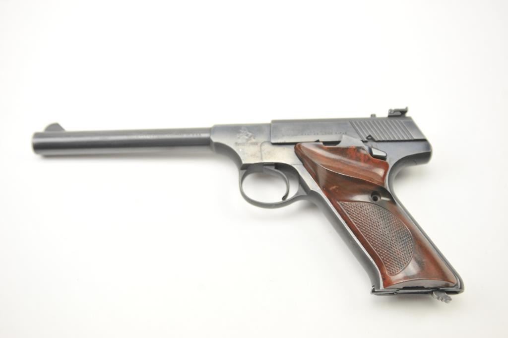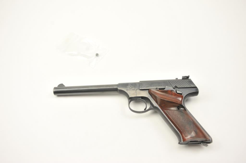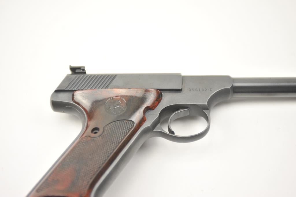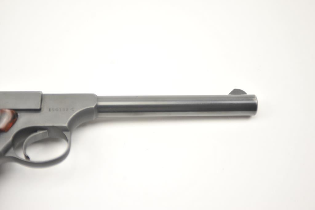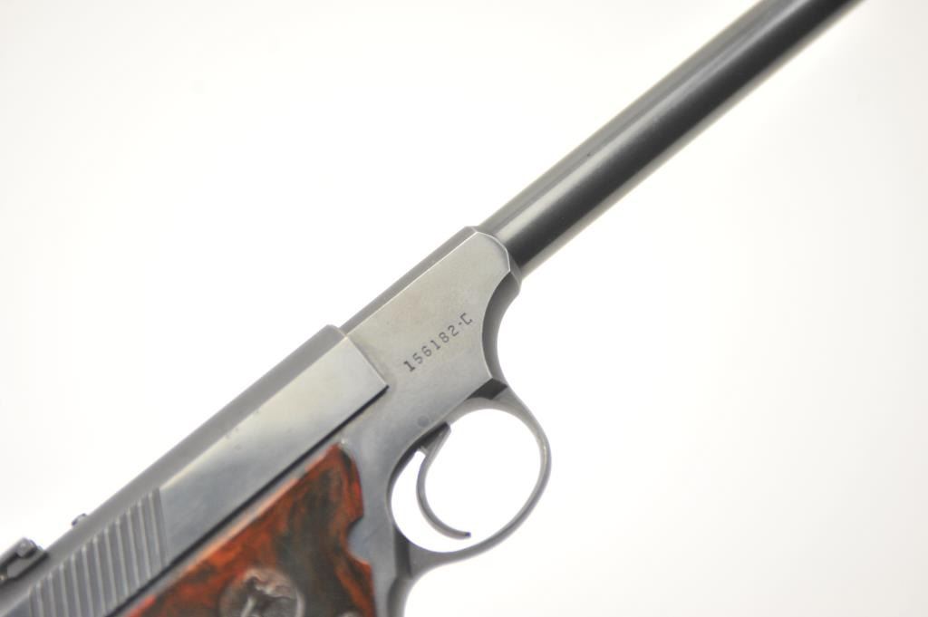 Colt Targetsman Semi-automatic pistol, .22 Long Rifle caliber, Serial #156182-C. The pistol is in fine overall condition with a 6” barrel. The pistol retains approximately 93-95% with light handling marks. Thecheckered plastic grips are in very good condition missing the center screw. The bore is good, the action is crisp and the markings are sharp. The lot includes one correct magazine. Est.: $400-$800.(Modern/PPT).