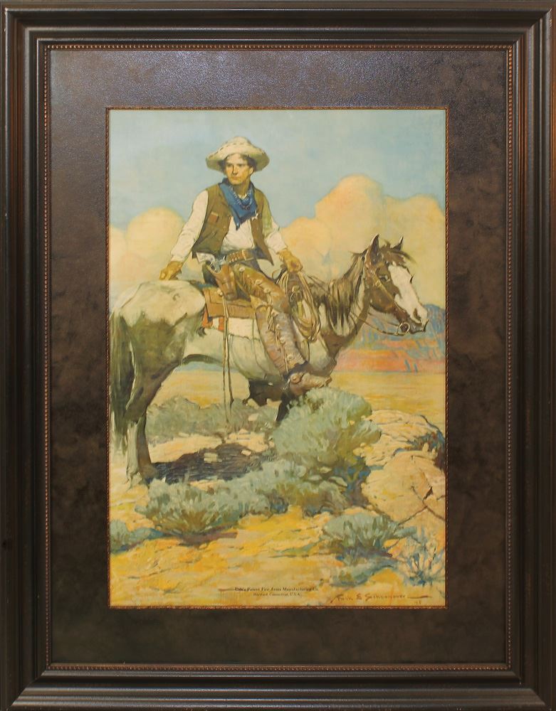 Classic Colt advertising poster known as "Patches". Bright colored original poster in the rare variation with "Colt Hartford, CT" across the bottom of image. Measuring 19" x 29".
