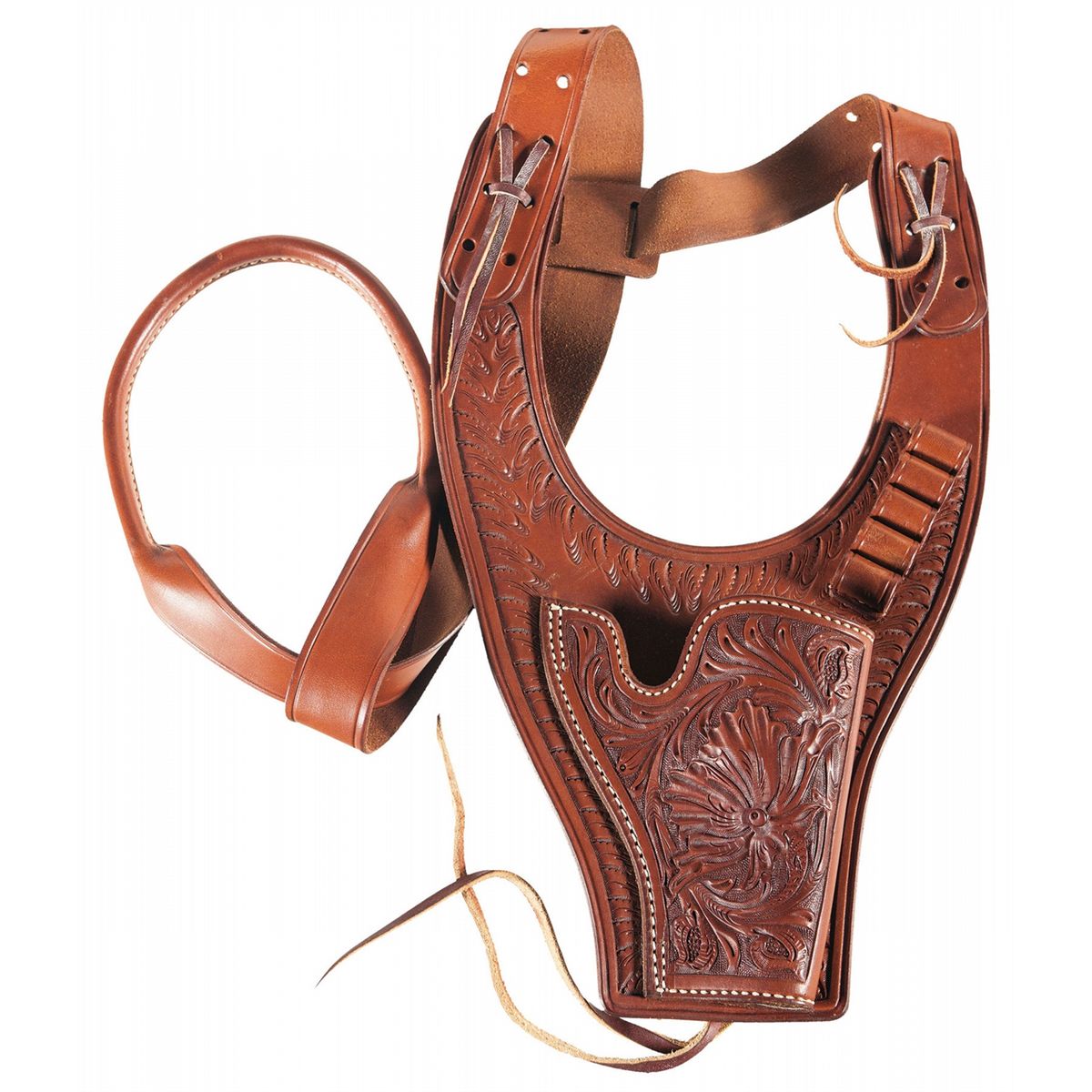 Manufactured in 1980. Standard markings and features with fixed sights. Matching serial number on frame and left side of grip straps under the grip and fitted with smooth walnut grips. The extra cylinder is 44 Special caliber and is numbered to the gun. Comes with leather shoulder holster, with 5 bullet loops.