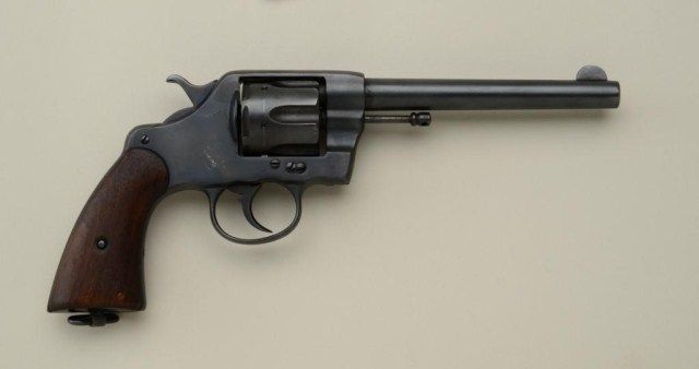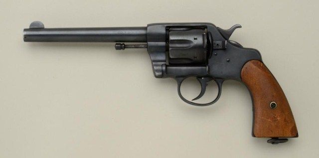 Colt U.S. Army Model 1903 DA revolver, .38 cal., 6” barrel, re-parkerized finish, wood grips, #240