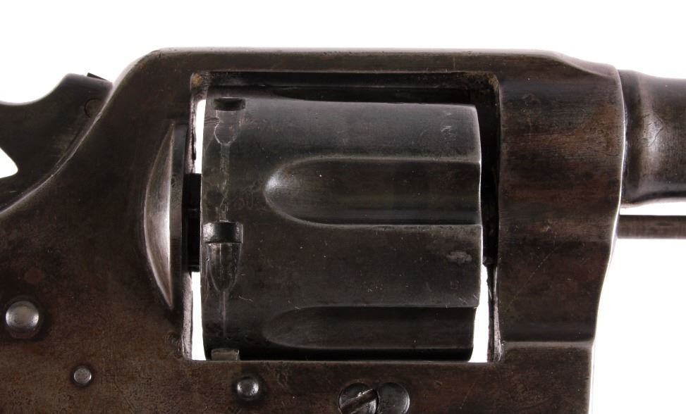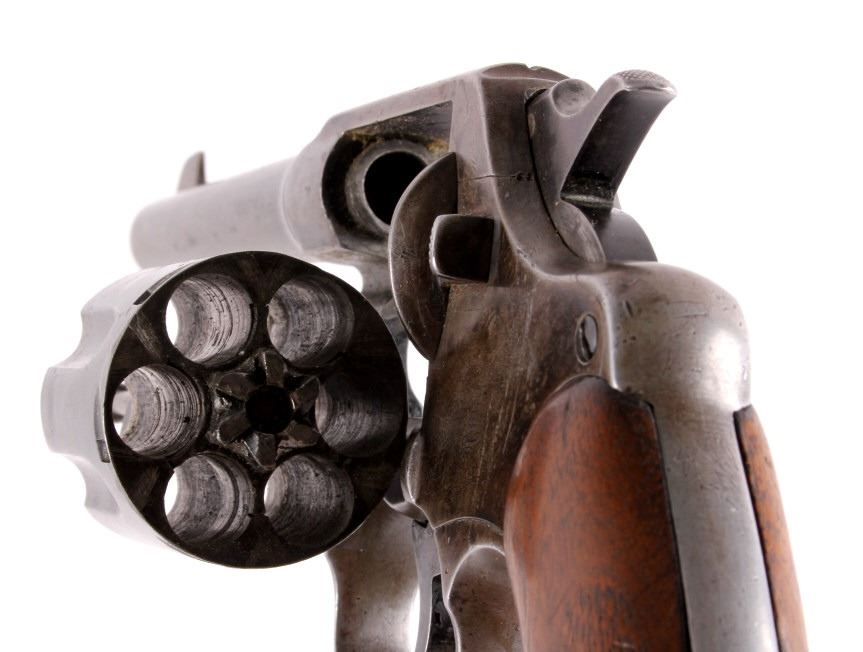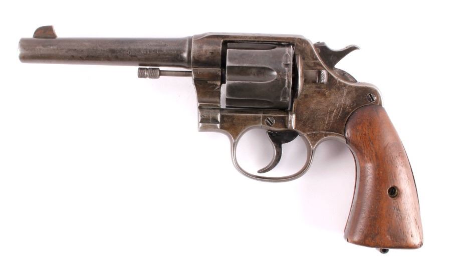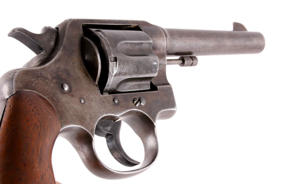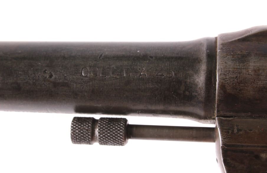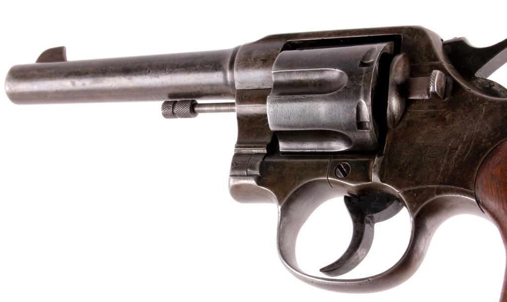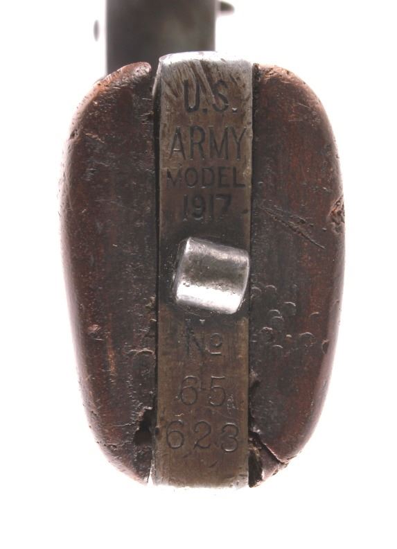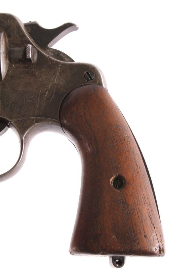 This is a Colt U.S. Army Model 1917 D.A. .45 revolver manufactured in 1919. The barrel is marked "Colt's Pt F.A. Mfg. Co. Hartford, Conn.". The pistol is marked on the butt "U.S. Army Model 1917 No. 65623" and features the original wooden grips. The pistol is in good original condition. It measures 5.75" x 11". Serial number 216050.
