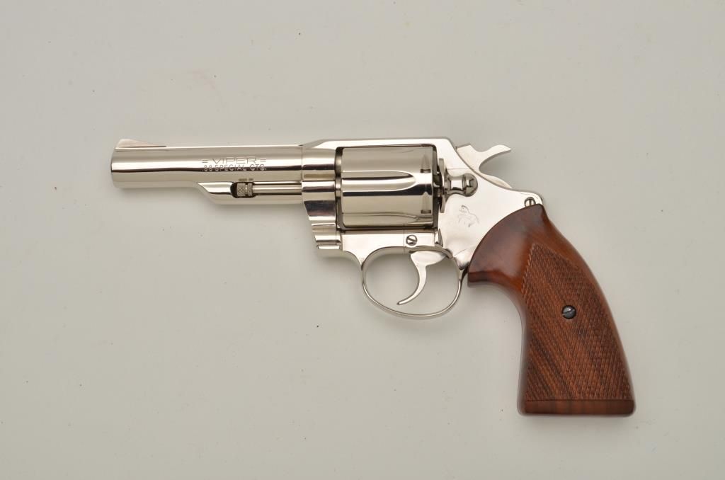 Colt Viper Model DA revolver, .38 Special cal., 4” barrel, nickel finish, checkered wood grips, #89343M in factory wood grained cardboard box with end label numbered to this gun, in like new condition showing littlehandling. Est.: $350-$700.