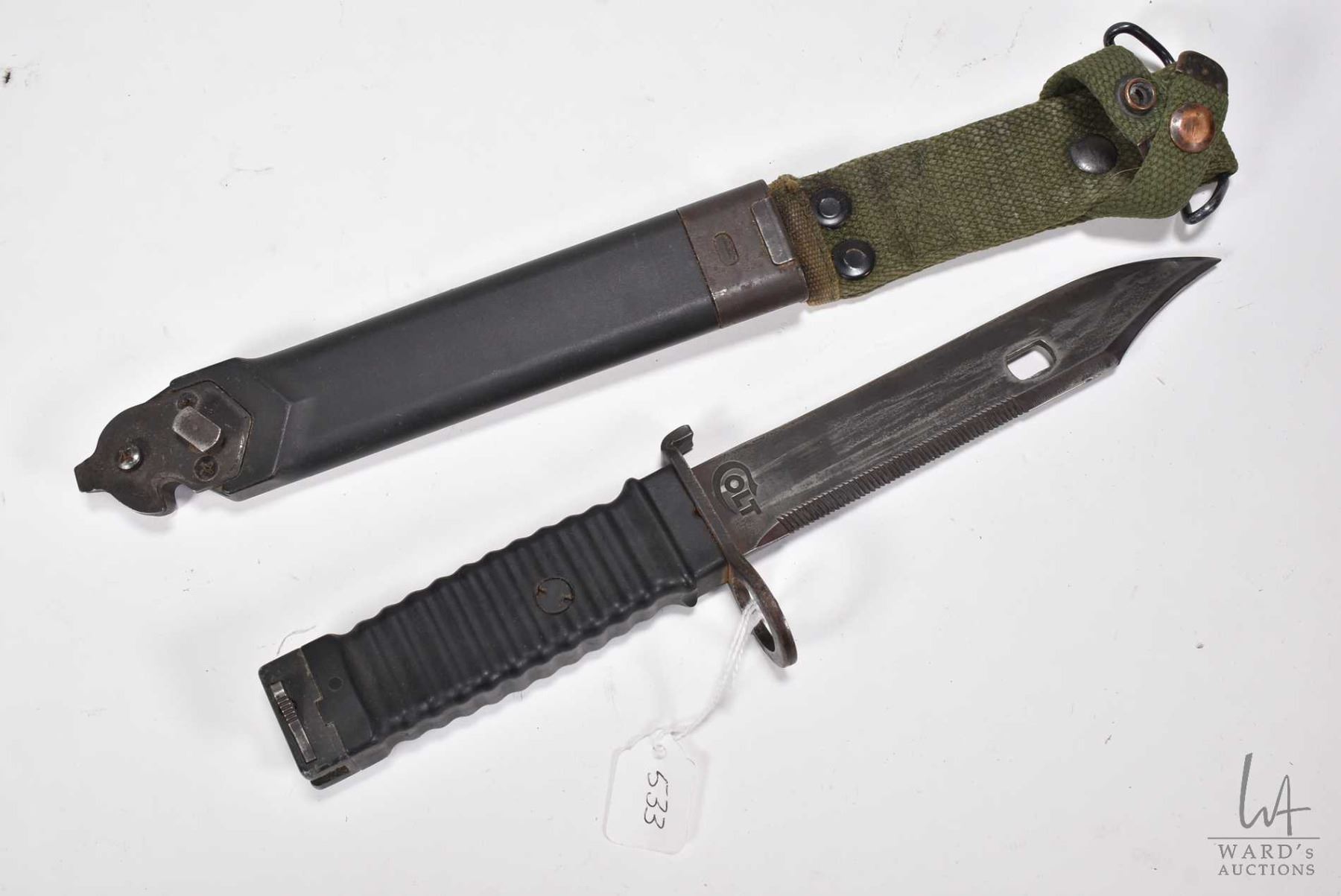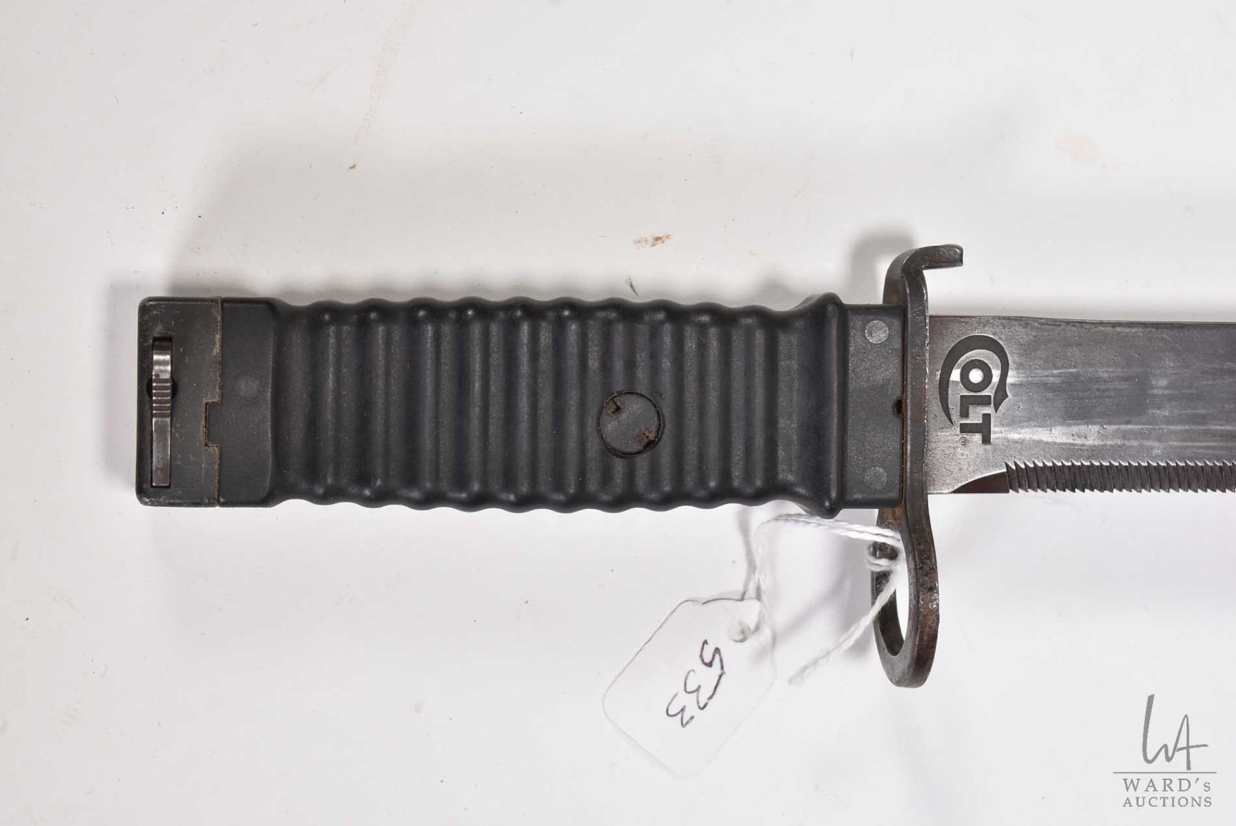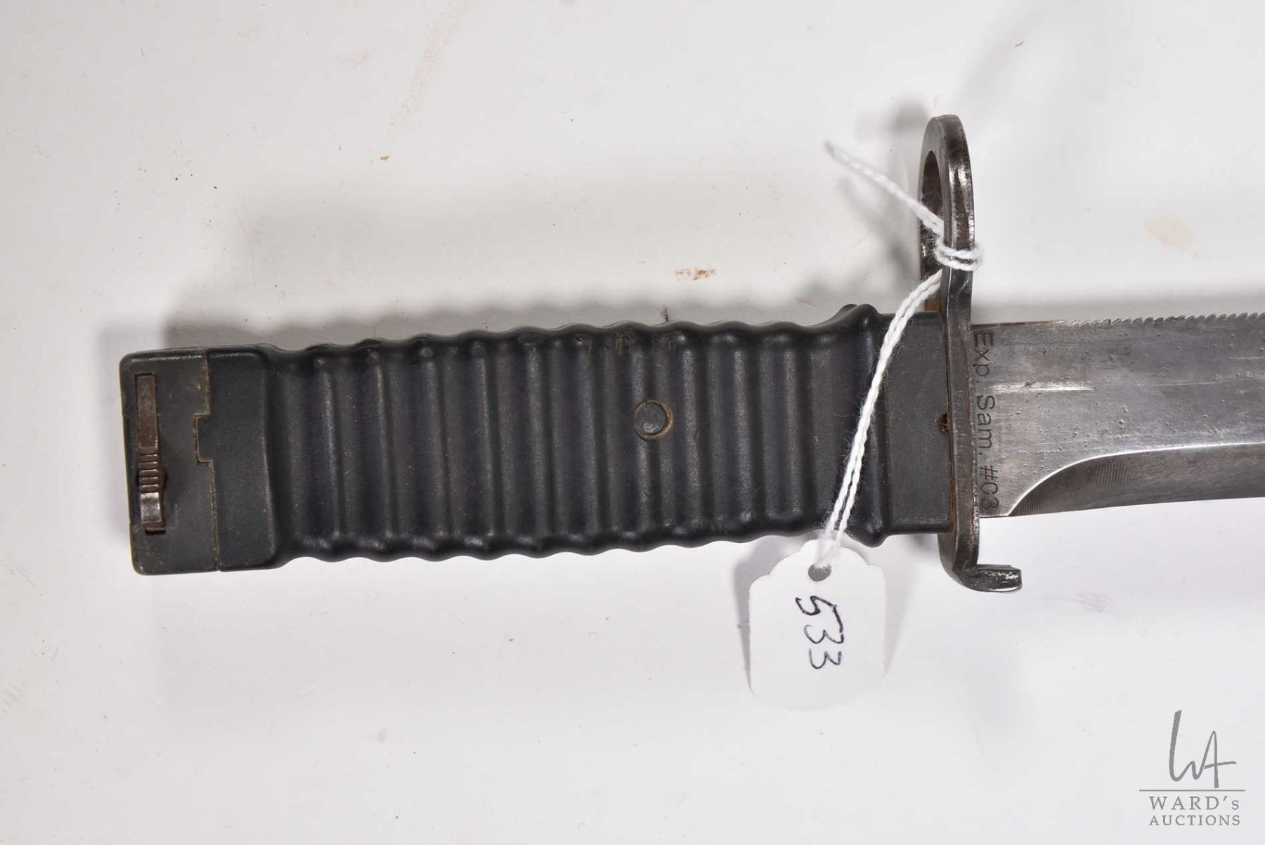 Colt branded bayonet marked EXP. Sam. #03 with scabbard