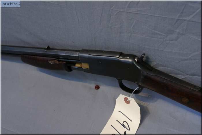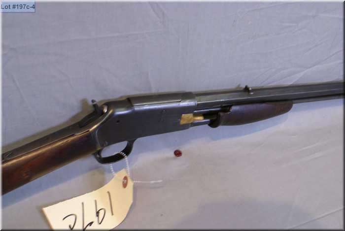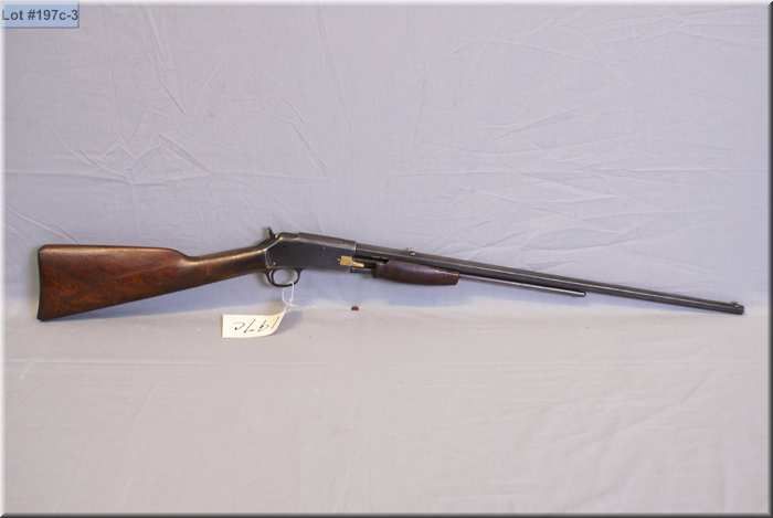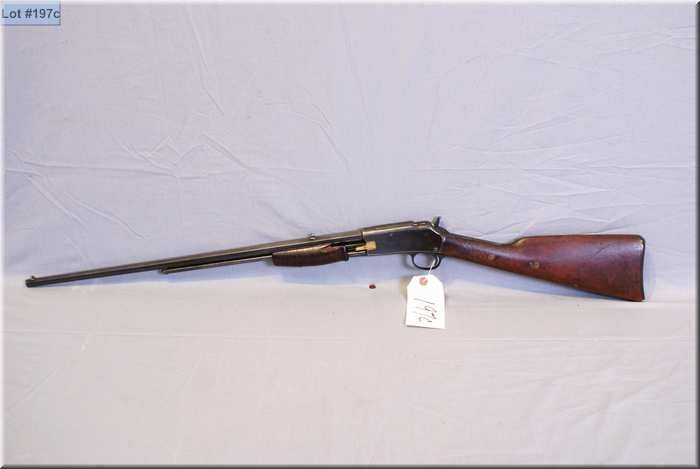Colt mod Lightning Small Frame .22 Long cal pump act Rifle w/24" oct bbl [ re-blued finish, dust cover, butt stock has been cracked &glued & repaired thru the stock in two places, Colt butt plate chipped at the toe, forend wood has age cracks & chip out of left side ] Ser # 64683