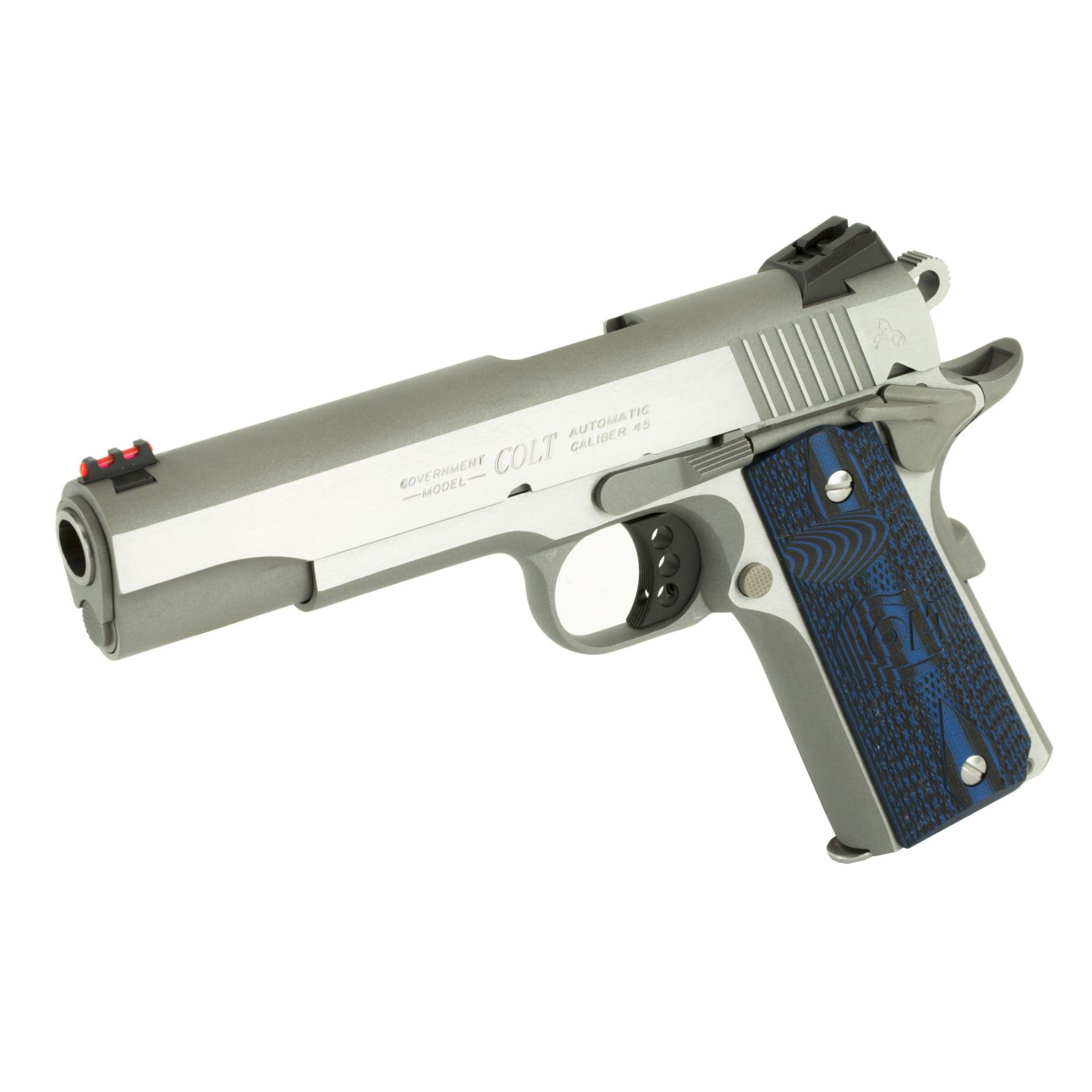 5" Barrel, Steel Frame, Stainless Finish, G10 Checkered Blue Grips, 8Rd, Series 70 Firing System, Novak Red Fiber Optic Front Sight, Novak Adjustable Rear Sight