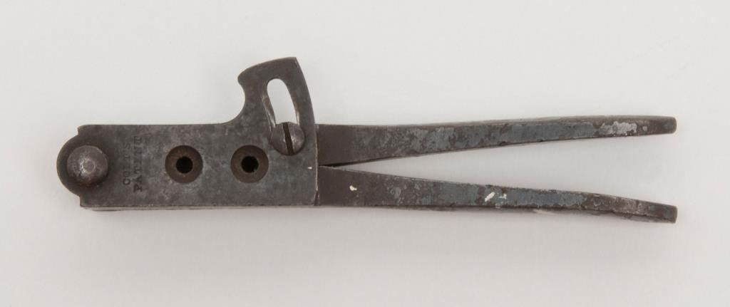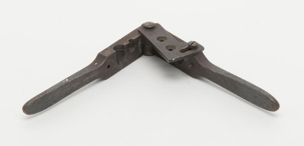 Colt’s Patent iron bullet mold for a .36 cal. Pocket revolver in overall fair to good condition; visible blue, scattered areas of erosion, old mars and nicks, un-cleaned. Est.: $175-$275.