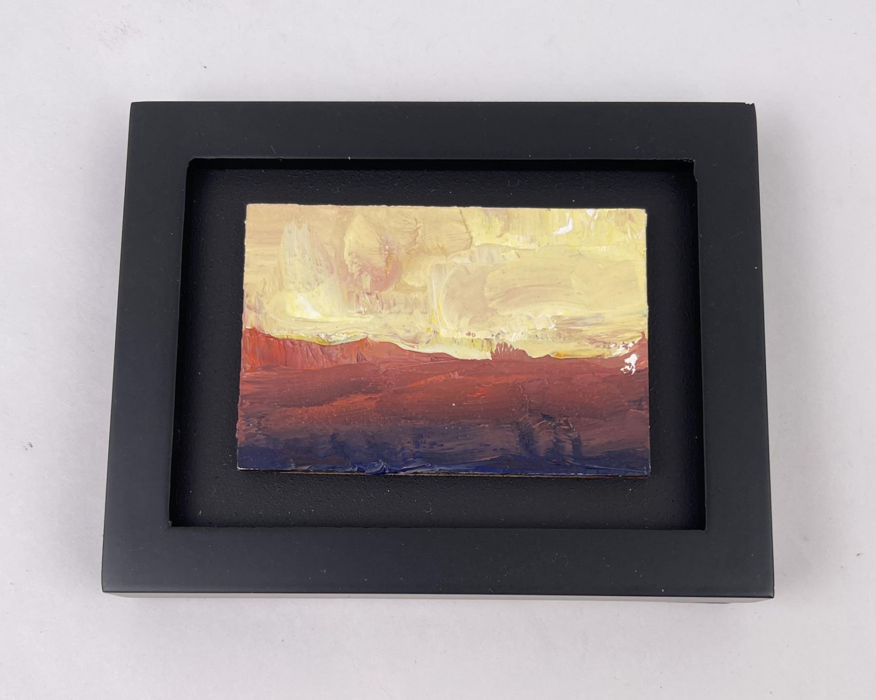 3 3/4" by 4 3/4" framed. Colter was born in Bozeman Montana and raised in a family that valued faith and wholesome activities. From his father, he learned to love the outdoors, respect wildlife, and live with commitment, consistency, and passion. From his mother, he was taught humor, kindness, and the value of finding joy in imagination. These roots provided the fertile beginnings for Colter's drive to become an artist. While the subject of his work primarily focuses on wildlife and landscapes, his ideation and philosophy behind his work are directly influenced by the values he learned and lives in his home. Colter graduated from Brigham Young University-Idaho with a BFA in painting. He lives in Utah with his wife Bobbe and their two daughters Mindy and Emi. EDUCATION 2019 - 2021 B.F.A. Painting, Brigham Young University - Idaho, Rexburg, Idaho 2017-2018 Southern Virginia University, Art Major, Concentration Graphic Design MENTORS Shae Warnick - Painting, Brigham Young University - Idaho Kimball Geisler - Plein Air Brian Astle - Painting, Brigham Young University - Idaho Leon Parson - Painting & Drawing, Brigham Young University - Idaho Barbara Crawford - Painting & Drawing, Southern Virginia University Bryce Pendleton - Design, Southern Virginia University AWARDS 2021 Merit Award, "Prairie Phantom", Animal Competition, Art Show International Third Place Professional "American Icon," Art Grows Rexburg Talent Award, "Last Minute", Color-1, Art Show International Best Artist Under 30, "Last Minute", April Plein Air Salon, Plein Air Magazine Curator's Choice Award, "Blueberry Monday", Idaho Falls Arts Council National Juried Exhibition Merit Award, "Navigating Negative Space", Brigham Young University - Idaho Student Show Merit Award, "Our Shared Symbol", Brigham Young University - Idaho Student Show Best Artist Under 30, "Blueberry Monday", January Plein Air Salon, Plein Air Magazine 2020 Finalist, Camelback Gallery, Abstracts in Gold and Silver First Place Photography, "Grid Iron Glory", Camelback Gallery, Autumn 2020, "Grid Iron Glory" Finalist, "Blueberry Monday', Camelback Gallery, Shades of Red Show First Place Amateur, "Blueberry Monday", Art Grows Rexburg Art Talent Award Scholarship, Brigham Young University - Idaho 2019 Best in Category, Book Arts, "Book of Mormon Art Show" Special Collections & Archives, Brigham Young University - Idaho Reserve Grand Champion, Madison County Fair Cover Award, The Review, Southern Virginia University Publication, Release, Cyanotype 2018 Best in Show, Utah County State Fair, "Pastel Horse" oil pastel People’s Choice Award, Southern Virginia University Student Art Show, "My Fish: Dog" Ink and colored pencil EXHIBITIONS 2021 2nd Annual Business Card Show, JKR Gallery, Provo, Utah 3rd Annual Juried Art Expo, Frame of Mind, Missoula, MT Art Grows Rexburg, Rexburg, Idaho Summit County Arts Showcase, Summit County, Utah April Plein Air Salon, Plein Air Magazine Handscapes, J Kirk Richards Gallery, Provo Utah BFA Senior Showcase, Monarchs of the West, Brigham Young University - Idaho A Walk in the Garten, Brigham Young University - Idaho Student Show Exhibit, Brigham Young University - Idaho Idaho Falls Arts Council National Juried Exhibition, Idaho Falls, Idaho All Shapes and Sizes, JKR Gallery, Provo Utah January Plein Air Salon, Plein Air Magazine Summit County Arts Showcase, Summit County, Utah 2020 Abstracts in Gold and Silver, Camelback Gallery Autumn, Camelback Gallery November Plein Air Salon, Plein Air Magazine Business Card Show, J Kirk Richards Gallery, Provo Utah Spring City Plein Air Competition Shades of Red, Camelback Gallery Art Grows Rexburg, Rexburg Idaho Idaho Arts Council National Juried Exhibition, Idaho Falls, Idaho Winter Fine Arts Show, Yellowstone Teton Gallery, St. Anthony, Idaho Introspection, Yellowstone Teton Gallery, St. Anthony, Idaho 2019 Student Show Exhibit, Brigham Young University - Idaho Art Grows Rexburg, Rexburg Idaho Book of Mormon Art Show, Special Collections & Archives, Brigham Young University - Idaho 2018 Student Art Show, Southern Virginia University