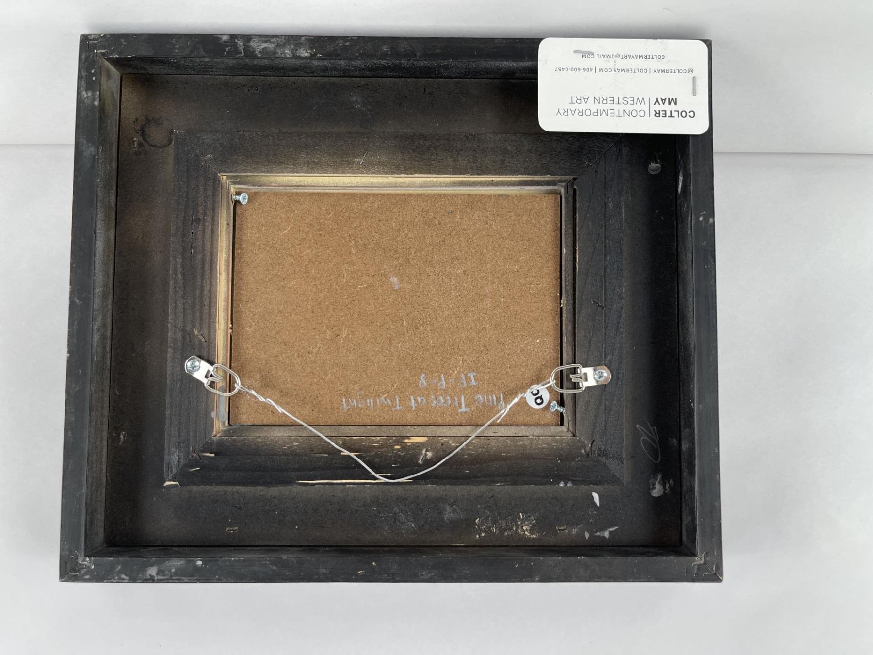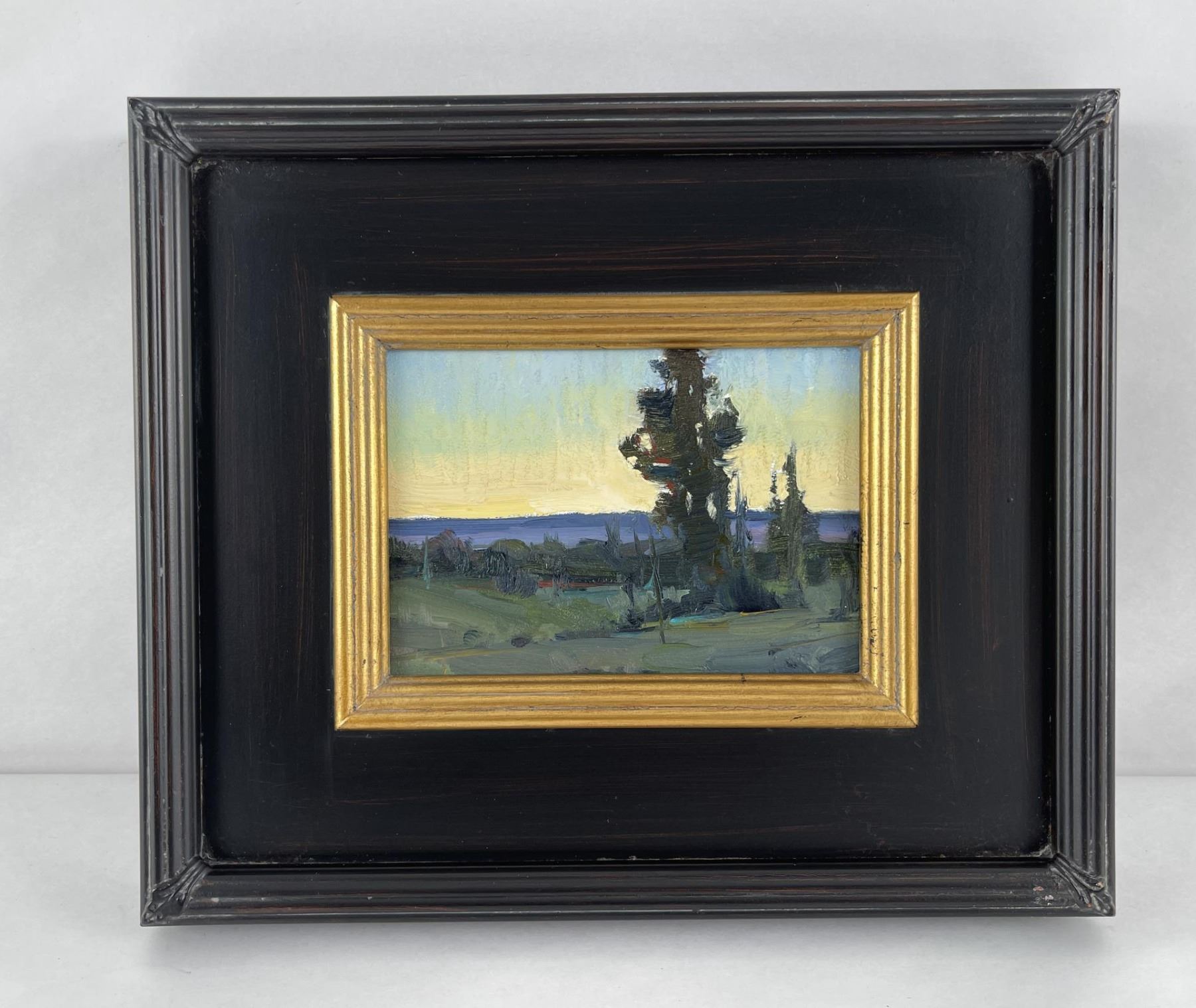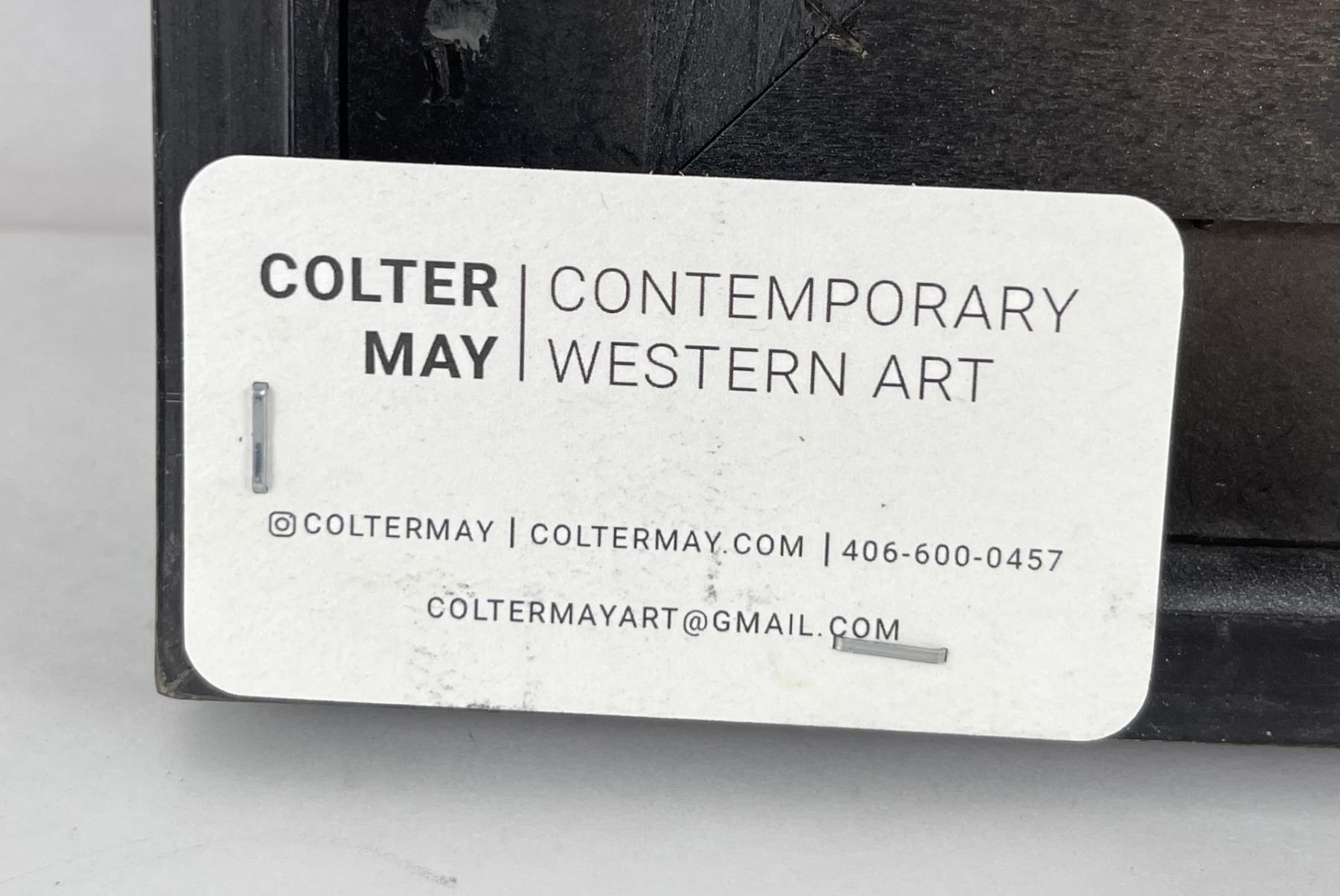 Title is Pine Trees at Twilight. 11" by 13" framed. Colter was born in Bozeman Montana and raised in a family that valued faith and wholesome activities. From his father, he learned to love the outdoors, respect wildlife, and live with commitment, consistency, and passion. From his mother, he was taught humor, kindness, and the value of finding joy in imagination. These roots provided the fertile beginnings for Colter's drive to become an artist. While the subject of his work primarily focuses on wildlife and landscapes, his ideation and philosophy behind his work are directly influenced by the values he learned and lives in his home. Colter graduated from Brigham Young University-Idaho with a BFA in painting. He lives in Utah with his wife Bobbe and their two daughters Mindy and Emi. EDUCATION 2019 - 2021 B.F.A. Painting, Brigham Young University - Idaho, Rexburg, Idaho 2017-2018 Southern Virginia University, Art Major, Concentration Graphic Design MENTORS Shae Warnick - Painting, Brigham Young University - Idaho Kimball Geisler - Plein Air Brian Astle - Painting, Brigham Young University - Idaho Leon Parson - Painting & Drawing, Brigham Young University - Idaho Barbara Crawford - Painting & Drawing, Southern Virginia University Bryce Pendleton - Design, Southern Virginia University AWARDS 2021 Merit Award, "Prairie Phantom", Animal Competition, Art Show International Third Place Professional "American Icon," Art Grows Rexburg Talent Award, "Last Minute", Color-1, Art Show International Best Artist Under 30, "Last Minute", April Plein Air Salon, Plein Air Magazine Curator's Choice Award, "Blueberry Monday", Idaho Falls Arts Council National Juried Exhibition Merit Award, "Navigating Negative Space", Brigham Young University - Idaho Student Show Merit Award, "Our Shared Symbol", Brigham Young University - Idaho Student Show Best Artist Under 30, "Blueberry Monday", January Plein Air Salon, Plein Air Magazine 2020 Finalist, Camelback Gallery, Abstracts in Gold and Silver First Place Photography, "Grid Iron Glory", Camelback Gallery, Autumn 2020, "Grid Iron Glory" Finalist, "Blueberry Monday', Camelback Gallery, Shades of Red Show First Place Amateur, "Blueberry Monday", Art Grows Rexburg Art Talent Award Scholarship, Brigham Young University - Idaho 2019 Best in Category, Book Arts, "Book of Mormon Art Show" Special Collections & Archives, Brigham Young University - Idaho Reserve Grand Champion, Madison County Fair Cover Award, The Review, Southern Virginia University Publication, Release, Cyanotype 2018 Best in Show, Utah County State Fair, "Pastel Horse" oil pastel People’s Choice Award, Southern Virginia University Student Art Show, "My Fish: Dog" Ink and colored pencil EXHIBITIONS 2021 2nd Annual Business Card Show, JKR Gallery, Provo, Utah 3rd Annual Juried Art Expo, Frame of Mind, Missoula, MT Art Grows Rexburg, Rexburg, Idaho Summit County Arts Showcase, Summit County, Utah April Plein Air Salon, Plein Air Magazine Handscapes, J Kirk Richards Gallery, Provo Utah BFA Senior Showcase, Monarchs of the West, Brigham Young University - Idaho A Walk in the Garten, Brigham Young University - Idaho Student Show Exhibit, Brigham Young University - Idaho Idaho Falls Arts Council National Juried Exhibition, Idaho Falls, Idaho All Shapes and Sizes, JKR Gallery, Provo Utah January Plein Air Salon, Plein Air Magazine Summit County Arts Showcase, Summit County, Utah 2020 Abstracts in Gold and Silver, Camelback Gallery Autumn, Camelback Gallery November Plein Air Salon, Plein Air Magazine Business Card Show, J Kirk Richards Gallery, Provo Utah Spring City Plein Air Competition Shades of Red, Camelback Gallery Art Grows Rexburg, Rexburg Idaho Idaho Arts Council National Juried Exhibition, Idaho Falls, Idaho Winter Fine Arts Show, Yellowstone Teton Gallery, St. Anthony, Idaho Introspection, Yellowstone Teton Gallery, St. Anthony, Idaho 2019 Student Show Exhibit, Brigham Young University - Idaho Art Grows Rexburg, Rexburg Idaho Book of Mormon Art Show, Special Collections & Archives, Brigham Young University - Idaho 2018 Student Art Show, Southern Virginia University