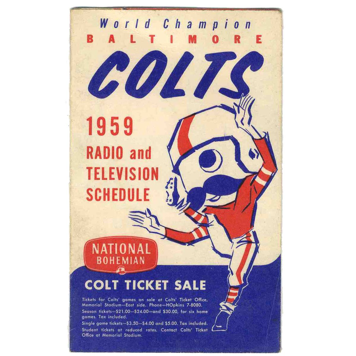 Baltimore Colts 1959 Schedule -- 4'' x 7.25'' Unfolded -- Minor Wear -- Very Good
