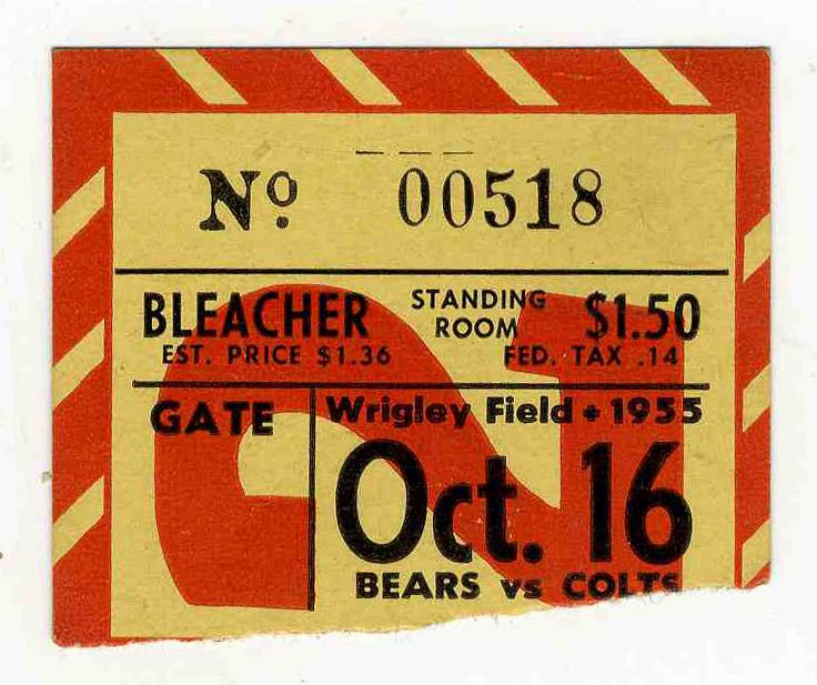 Colts Vs. Bears Ticket Stub -- 16 October 1955 at Wrigley Field -- Very Good