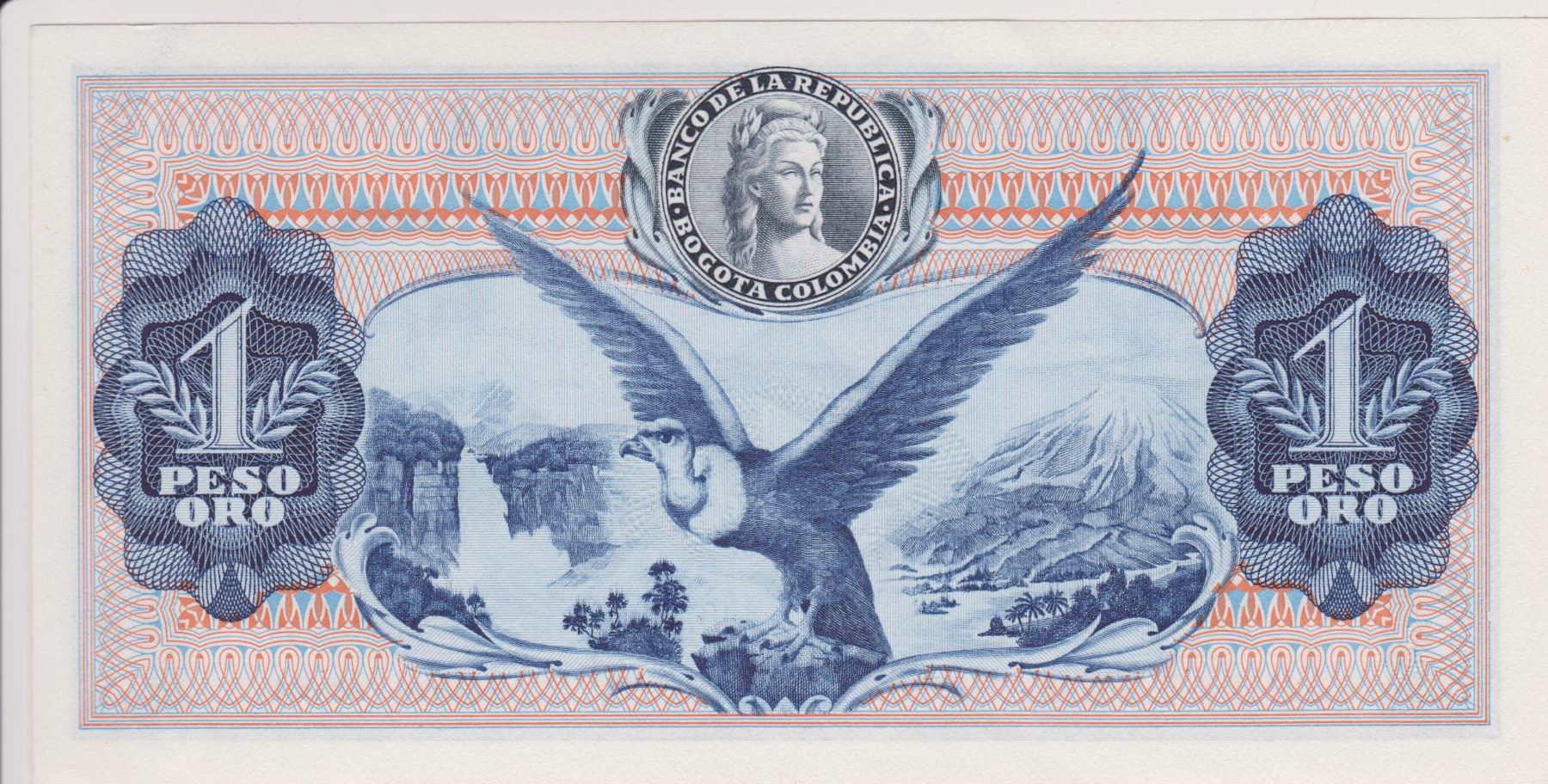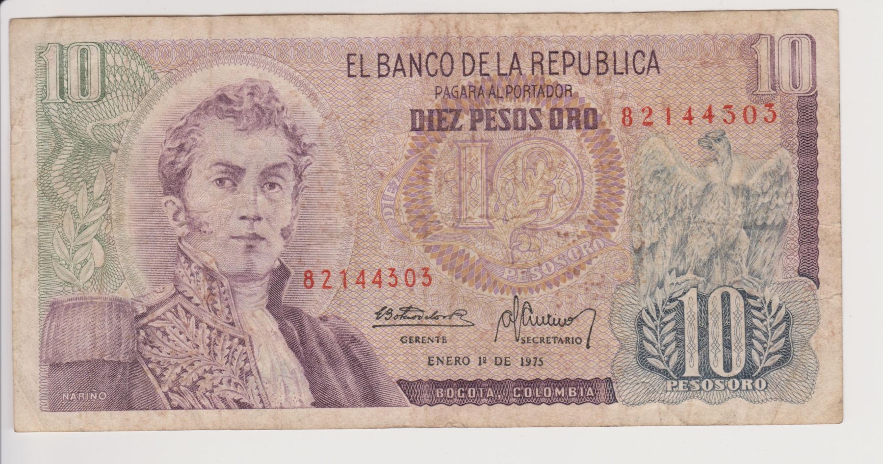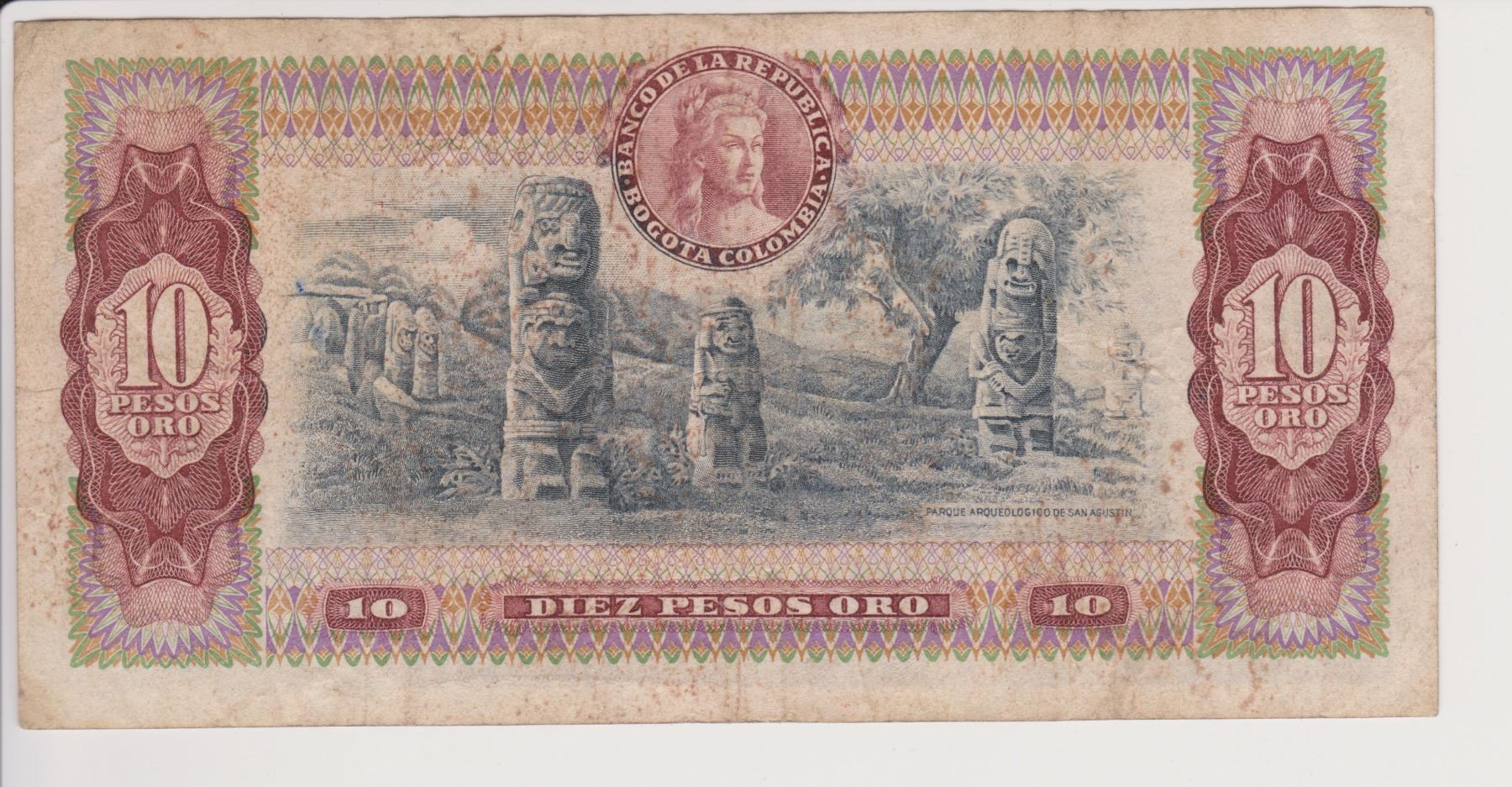 Columbia 2 notes 1 and 10 peso fine to ex cond